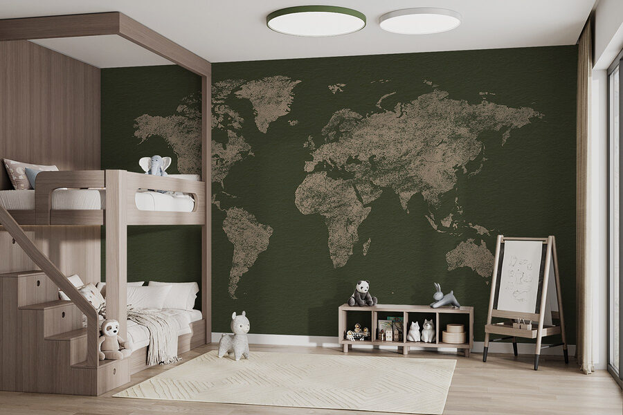 Verwandeln Sie jeden Raum in eine abenteuerliche Welt mit dieser atemberaubenden Wandtapete “Map of the World”. Es ist, als hätte man einen Reisefreund direkt an der Wand, der einem Geschichten von fernen Ländern und verborgenen Schätzen zuflüstert. Die erdigen Töne strahlen eine warme Atmosphäre aus und eignen sich perfekt für eine gemütliche Leseecke oder eine leere Wand, die einfach nur nach etwas Persönlichkeit schreit.