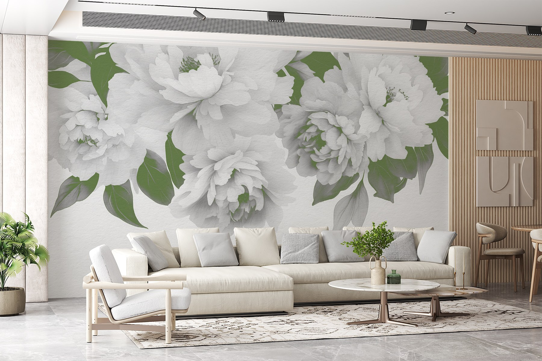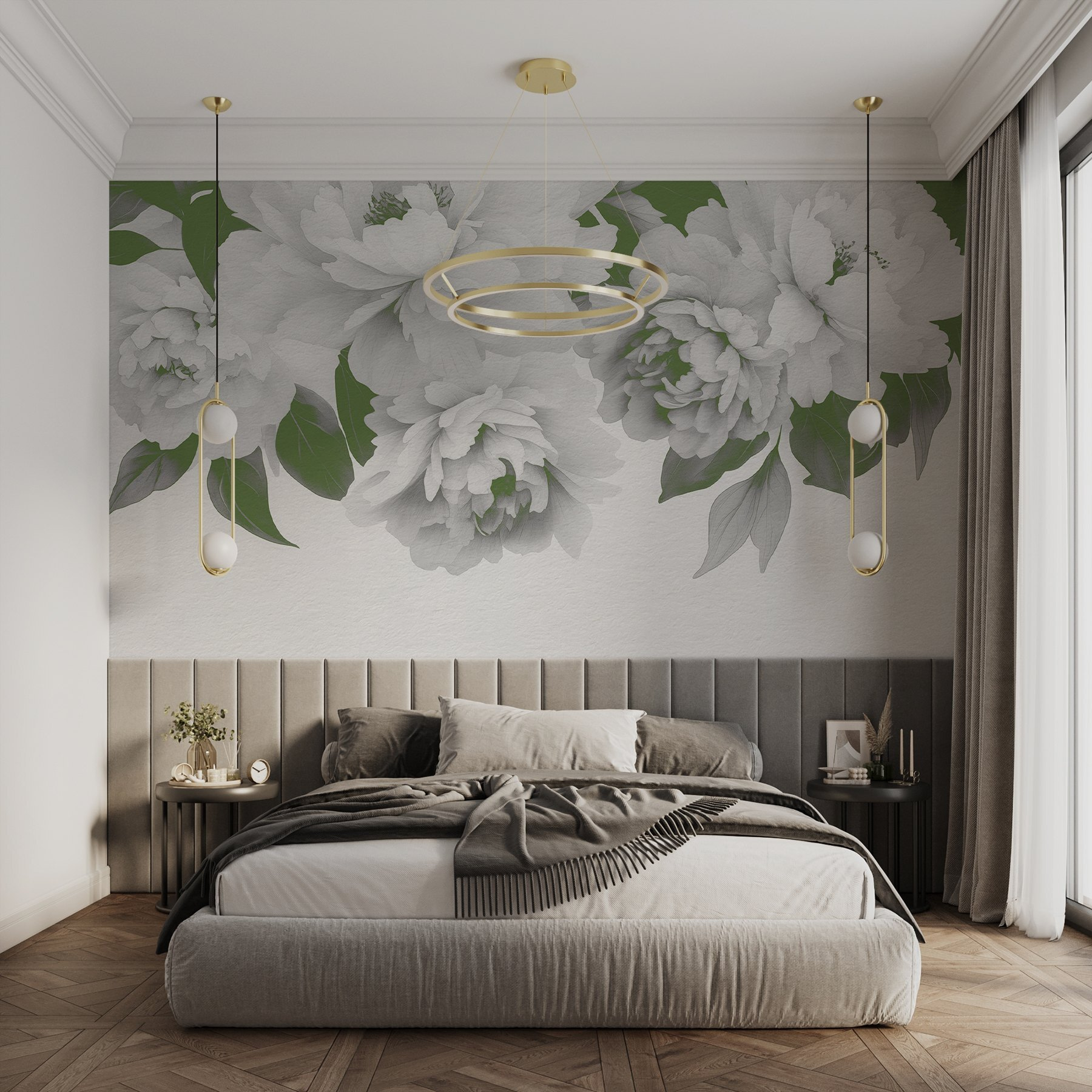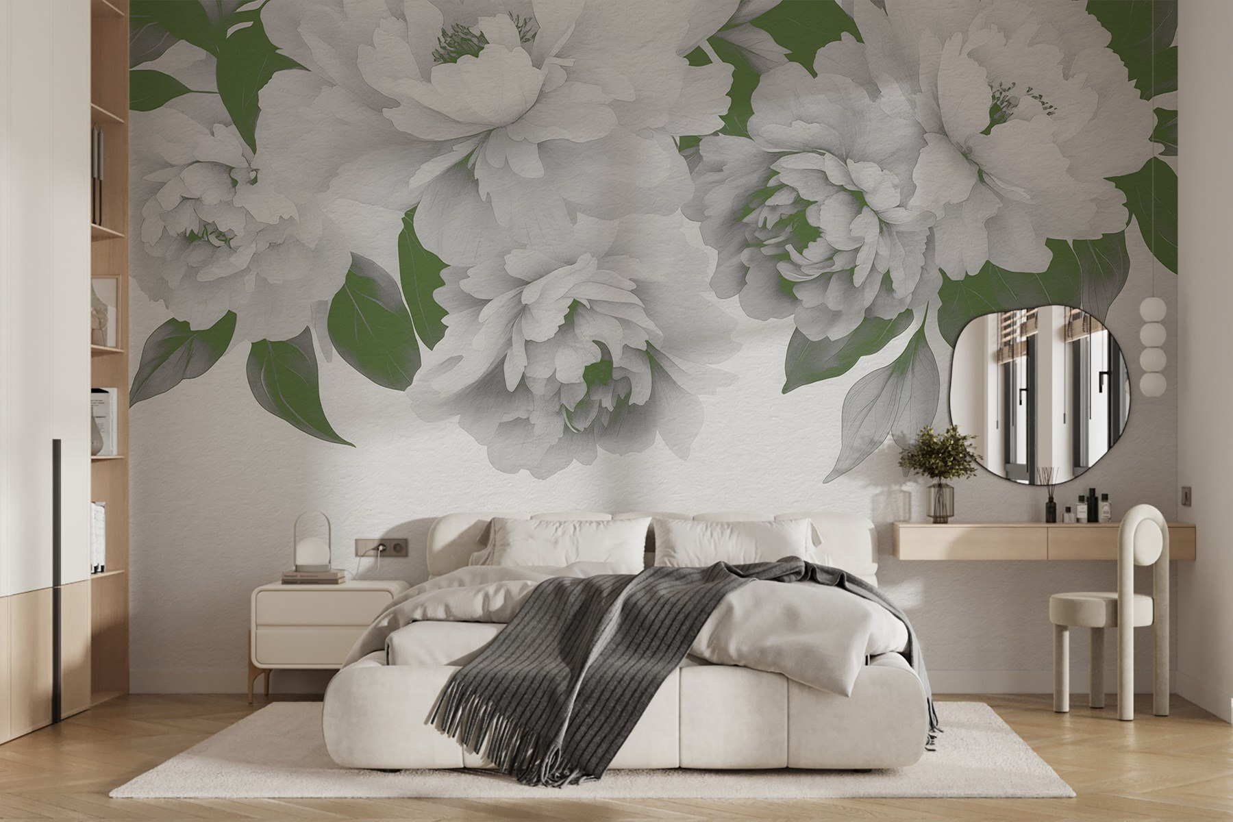 Verwandeln Sie jeden Raum in einen heiteren Garten mit dieser atemberaubenden Fototapete, die eine Gruppe eleganter weißer Blumen und üppig grüner Blätter zeigt. Stellen Sie sich vor, Sie wachen mit diesem beruhigenden Anblick auf, bei dem die Einfachheit der Natur auf künstlerisches Flair trifft. Es ist wie ein Hauch von frischer Luft, der Wärme und Ruhe in Ihr Zuhause bringt. Diese Blüten eignen sich perfekt für ein gemütliches Wohnzimmer oder ein friedliches Schlafzimmer, denn sie verwelken nicht, sondern verbreiten jeden Tag diese verträumte Stimmung. Eine wunderbare Art, Charme und Charakter zu verleihen – ganz ohne Gießen! Warum sollten Sie sich also mit schlichten Wänden zufrieden geben, wenn ein florales Meisterwerk Ihren Tag verschönern kann?