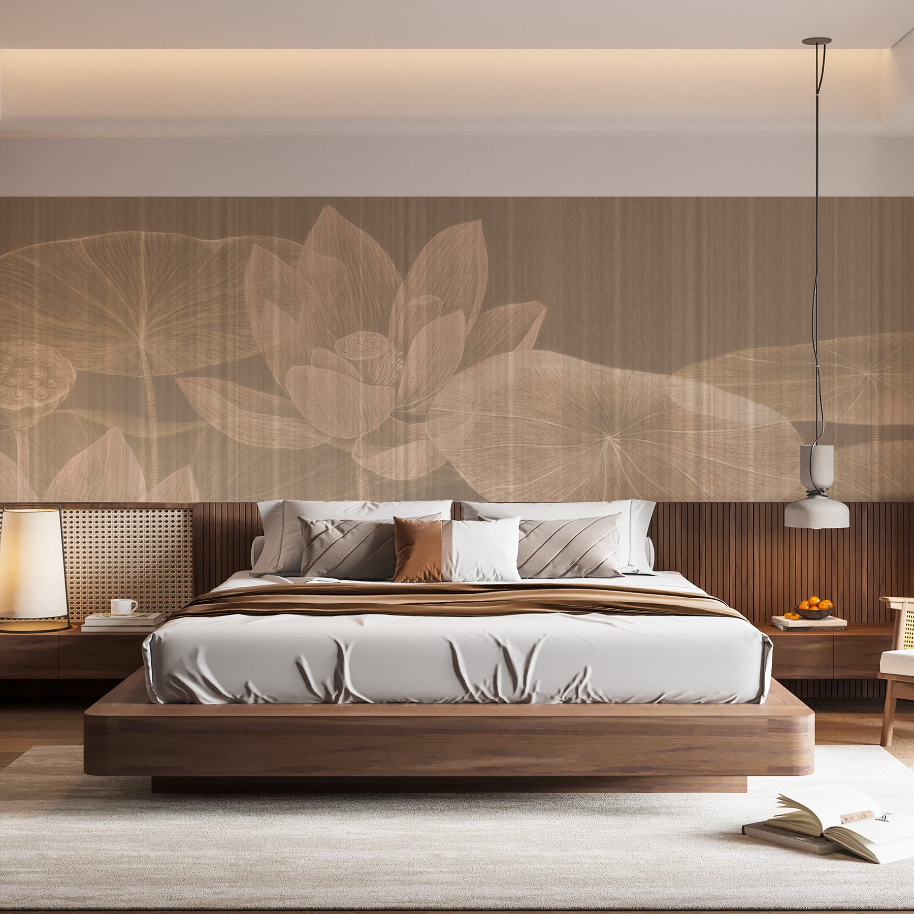 Stellen Sie sich vor, wie Ihre Freunde es bewundern und vielleicht darüber seufzen, wie es den Raum in einen friedlichen Rückzugsort verwandelt. Es ist perfekt, um es sich mit einem Buch gemütlich zu machen oder eine Tasse Tee zu genießen, und schafft eine kleine Fluchtmöglichkeit, ohne das Haus zu verlassen. Ob im Wohn- oder Schlafzimmer, diese Fototapete lädt zur Entspannung ein und weckt Tagträume von friedlichen Seen. Ein echter Gesprächsanlass mit einem Hauch von natürlicher Eleganz – was kann man daran nicht lieben?