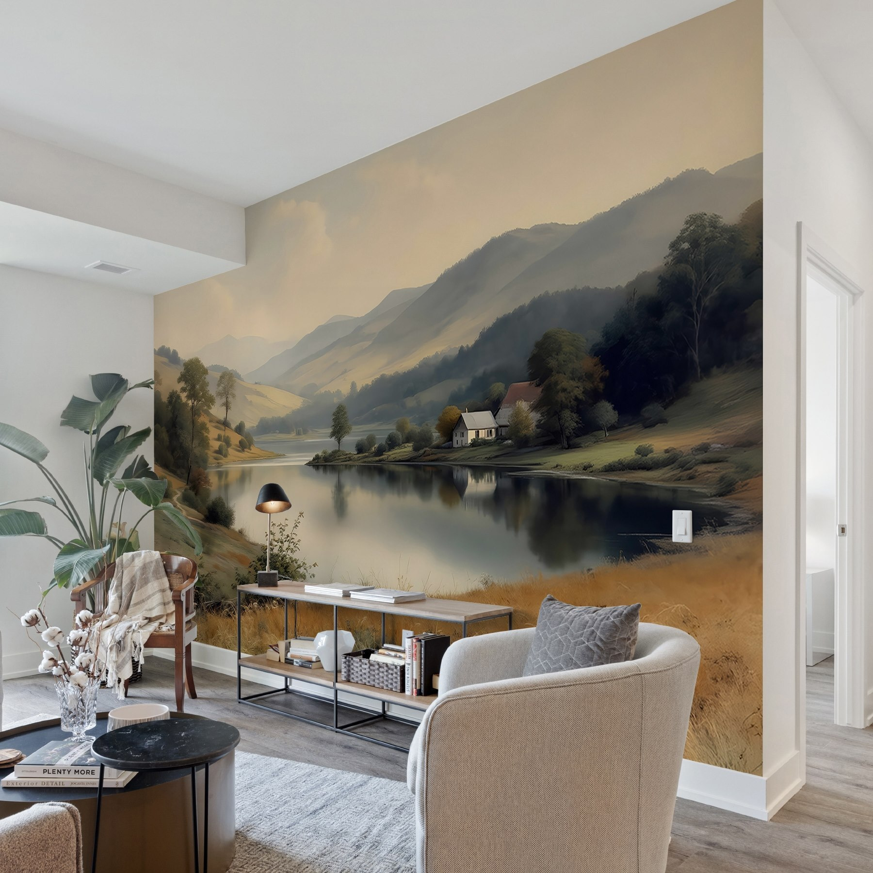 Verwandeln Sie eine langweilige Wand in eine heitere Zuflucht mit dieser atemberaubenden Fototapete mit einem friedlichen See, einem charmanten Haus und sanften Bäumen. Stellen Sie sich vor, wie Sie gemütlich auf Ihrer Couch einen Kaffee schlürfen, während Sie die ruhige Atmosphäre genießen. Die sanften Farbtöne flüstern “Relax”, während sie Ruhe in Ihren Raum einladen. Stellen Sie sich einen Sonntagmorgen vor, die Vögel zwitschern draußen, das Licht strömt herein – es ist, als hätten Sie ein Stück Natur direkt in Ihrem Wohnzimmer. Perfekt für Naturliebhaber oder alle, die einen kleinen Urlaub in ihrem eigenen Zuhause brauchen. Warum also nicht ein kleines Stückchen Gelassenheit ins Haus holen?