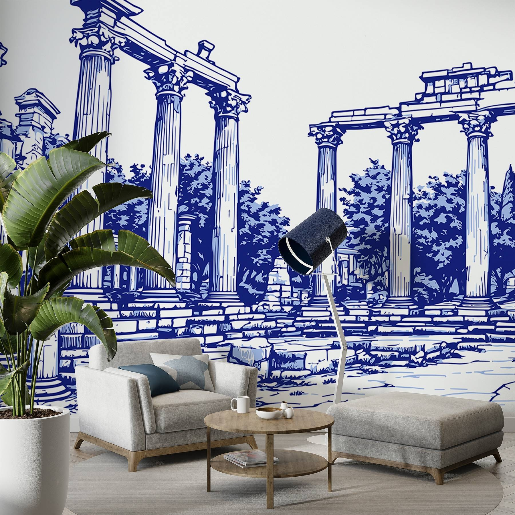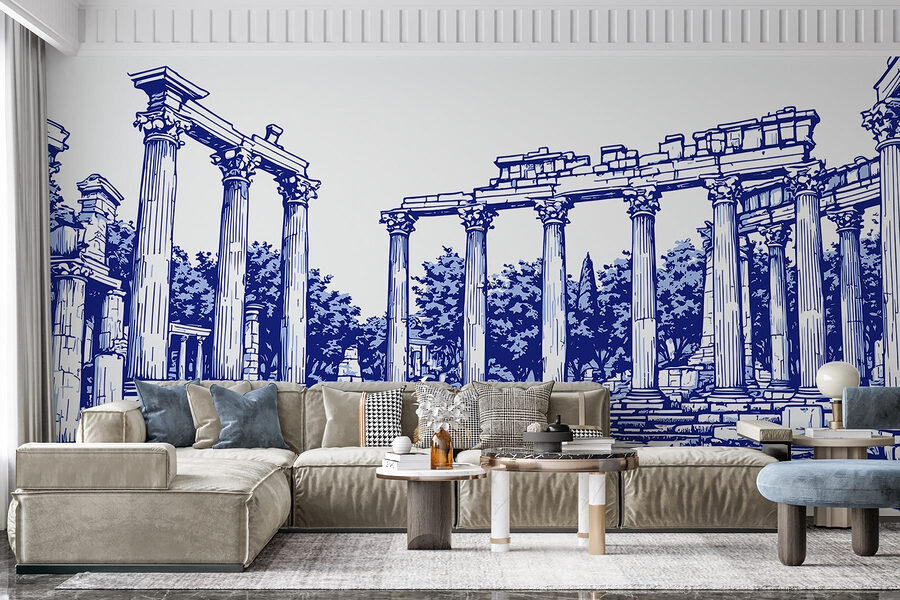 Treten Sie ein in die Welt des antiken Charmes mit dieser atemberaubenden Fototapete, die eine fesselnde Steinstruktur mit eleganten Säulen zeigt. Stellen Sie sich vor, Sie betreten Ihr Zimmer und werden sofort in eine ruhige griechische Ruine versetzt, in der das Sonnenlicht durch üppige Bäume fällt. Die reichhaltigen Details und schönen Linien laden zu Tagträumen von bezaubernder Geschichte und epischen Erzählungen ein. Es ist, als ob Sie ein Stück Natur und Tradition in Ihren Alltag einladen. Dieses Wandbild eignet sich perfekt für eine leere Wand und verleiht ihr Wärme und Charakter – ideal für gemütliche Abende oder gesellige Zusammenkünfte. Lassen Sie Ihre Wände eine einzigartige Geschichte erzählen, die die Fantasie anregt!