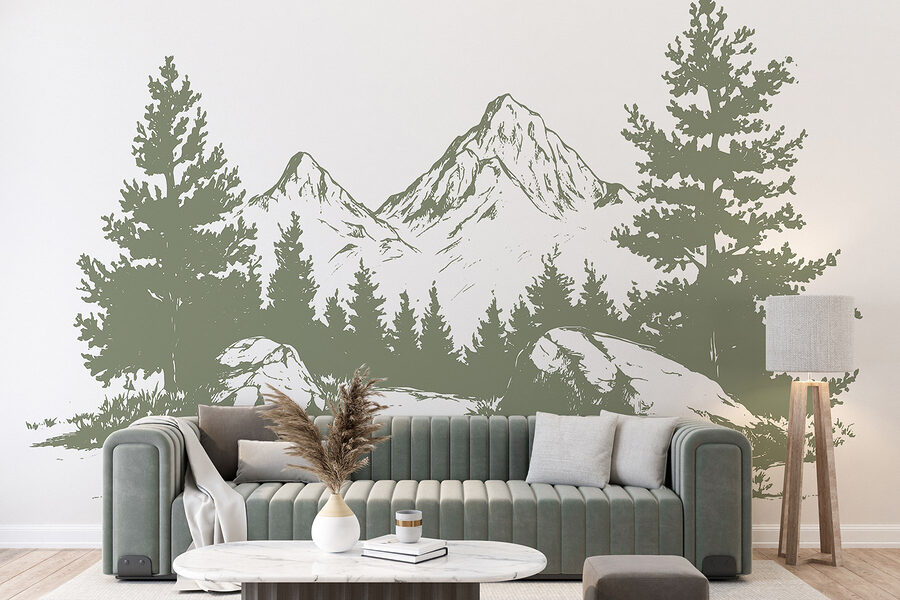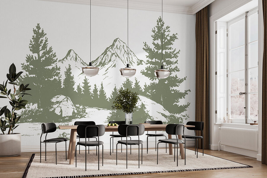 Verwandeln Sie jeden Raum in einen ruhigen Zufluchtsort mit dieser Fototapete, die eine bezaubernde Szene von Bäumen und Bergen zeigt. Stellen Sie sich vor, dass Sie mit jedem Blick in einen ruhigen Wald eintauchen – in einem Moment sind Sie in Gedanken versunken, im nächsten träumen Sie von einer gemütlichen Hütte. Die erdigen Töne passen wunderbar zueinander und sorgen für eine ruhige Atmosphäre, die Entspannung verspricht. Perfekt für ein Wohnzimmer, ein Büro oder sogar für eine Ecke, die nach etwas Charme verlangt. Es ist, als ob man sich ein Stück Natur ins Haus holt – ganz ohne Insektenspray. Wer würde bei diesem Anblick nicht gerne aufwachen?