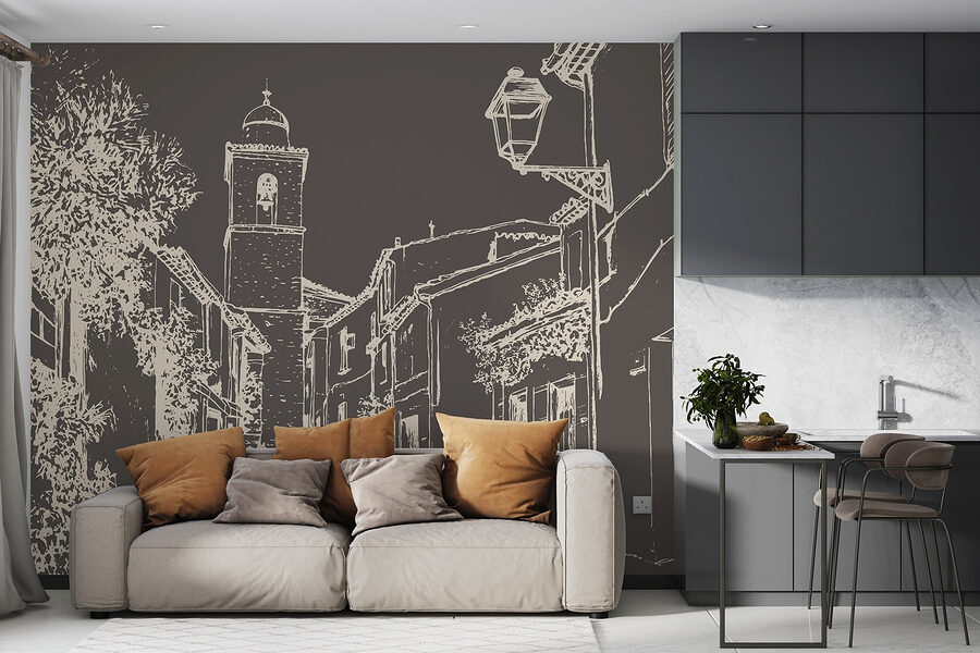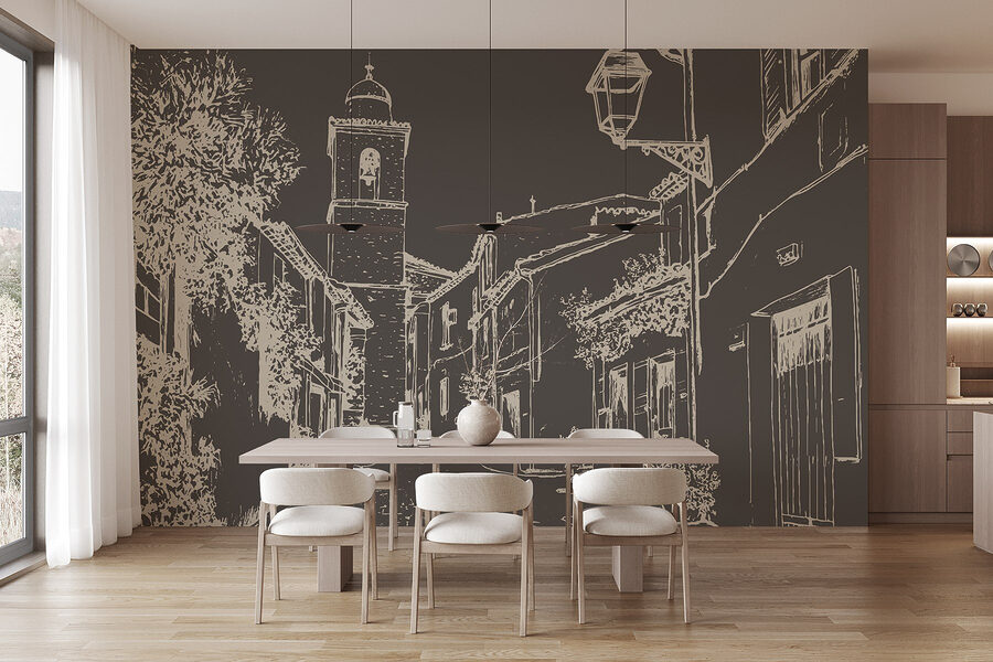 Betreten Sie eine charmante Straßenszene mit dieser Fototapete, die die Wärme eines gemütlichen Dorflebens einfängt. Mit seinen malerischen Gebäuden und dem Glockenturm, der aussieht, als wäre er direkt aus einem Märchenbuch entsprungen, ist es perfekt, um Tagträume und Fernweh zu wecken. Stellen Sie sich vor, Sie schlürfen einen Kaffee, während Sie auf diese herrliche Aussicht blicken, als ob der Duft von frischem Brot direkt hinter dem Wandbild herwehen würde. Die sanften Linien verleihen dem Bild eine spielerische Note, die zur Ruhe einlädt. Diese Fototapete passt in jeden Raum und verleiht ihm den Charakter und die schönen kleinen Momente, die ein Zuhause ausmachen. Außerdem ist es ein echter Gesprächsanlass – wer würde nicht gerne über seine imaginären Reisen plaudern?