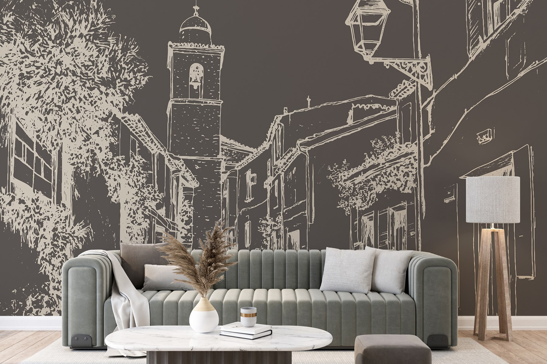 Betreten Sie eine charmante Straßenszene mit dieser Fototapete, die die Wärme eines gemütlichen Dorflebens einfängt. Mit seinen malerischen Gebäuden und dem Glockenturm, der aussieht, als wäre er direkt aus einem Märchenbuch entsprungen, ist es perfekt, um Tagträume und Fernweh zu wecken. Stellen Sie sich vor, Sie schlürfen einen Kaffee, während Sie auf diese herrliche Aussicht blicken, als ob der Duft von frischem Brot direkt hinter dem Wandbild herwehen würde. Die sanften Linien verleihen dem Bild eine spielerische Note, die zur Ruhe einlädt. Diese Fototapete passt in jeden Raum und verleiht ihm den Charakter und die schönen kleinen Momente, die ein Zuhause ausmachen. Außerdem ist es ein echter Gesprächsanlass – wer würde nicht gerne über seine imaginären Reisen plaudern?