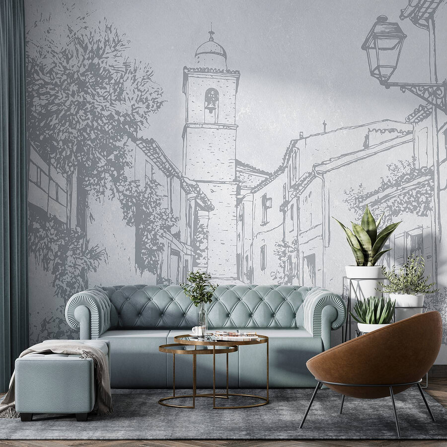 Diese charmante Fototapete, die eine skizzenhafte Straßenszene mit einem Glockenturm zeigt, verleiht jedem Raum eine neue Note. Stellen Sie sich vor, wie Sie diesen verschlungenen Pfad hinunterwandern, vielleicht mit einer warmen Tasse Gemütlichkeit in der Hand. Die sanften Linien und weichen Details laden zum Entspannen ein und eignen sich perfekt für ein Wohnzimmer oder eine ruhige Ecke, in der man seinen Tagträumen nachhängen kann. Es ist, als würde man in ein Märchenbuch eintauchen, in dem jeder Blick einen neuen Gedanken oder eine Erinnerung auslöst. Ob als Gesprächsanlass oder einfach nur als beruhigende Kulisse, dieses Wandbild verleiht dem Raum eine einzigartige Note, die Charme und Gemütlichkeit ausstrahlt. Perfekt für alle, die ein wenig Skurrilität in ihrem Raum zu schätzen wissen!