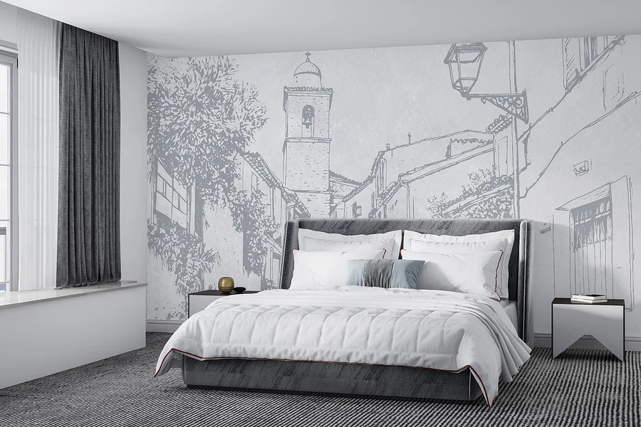 Diese charmante Fototapete, die eine skizzenhafte Straßenszene mit einem Glockenturm zeigt, verleiht jedem Raum eine neue Note. Stellen Sie sich vor, wie Sie diesen verschlungenen Pfad hinunterwandern, vielleicht mit einer warmen Tasse Gemütlichkeit in der Hand. Die sanften Linien und weichen Details laden zum Entspannen ein und eignen sich perfekt für ein Wohnzimmer oder eine ruhige Ecke, in der man seinen Tagträumen nachhängen kann. Es ist, als würde man in ein Märchenbuch eintauchen, in dem jeder Blick einen neuen Gedanken oder eine Erinnerung auslöst. Ob als Gesprächsanlass oder einfach nur als beruhigende Kulisse, dieses Wandbild verleiht dem Raum eine einzigartige Note, die Charme und Gemütlichkeit ausstrahlt. Perfekt für alle, die ein wenig Skurrilität in ihrem Raum zu schätzen wissen!