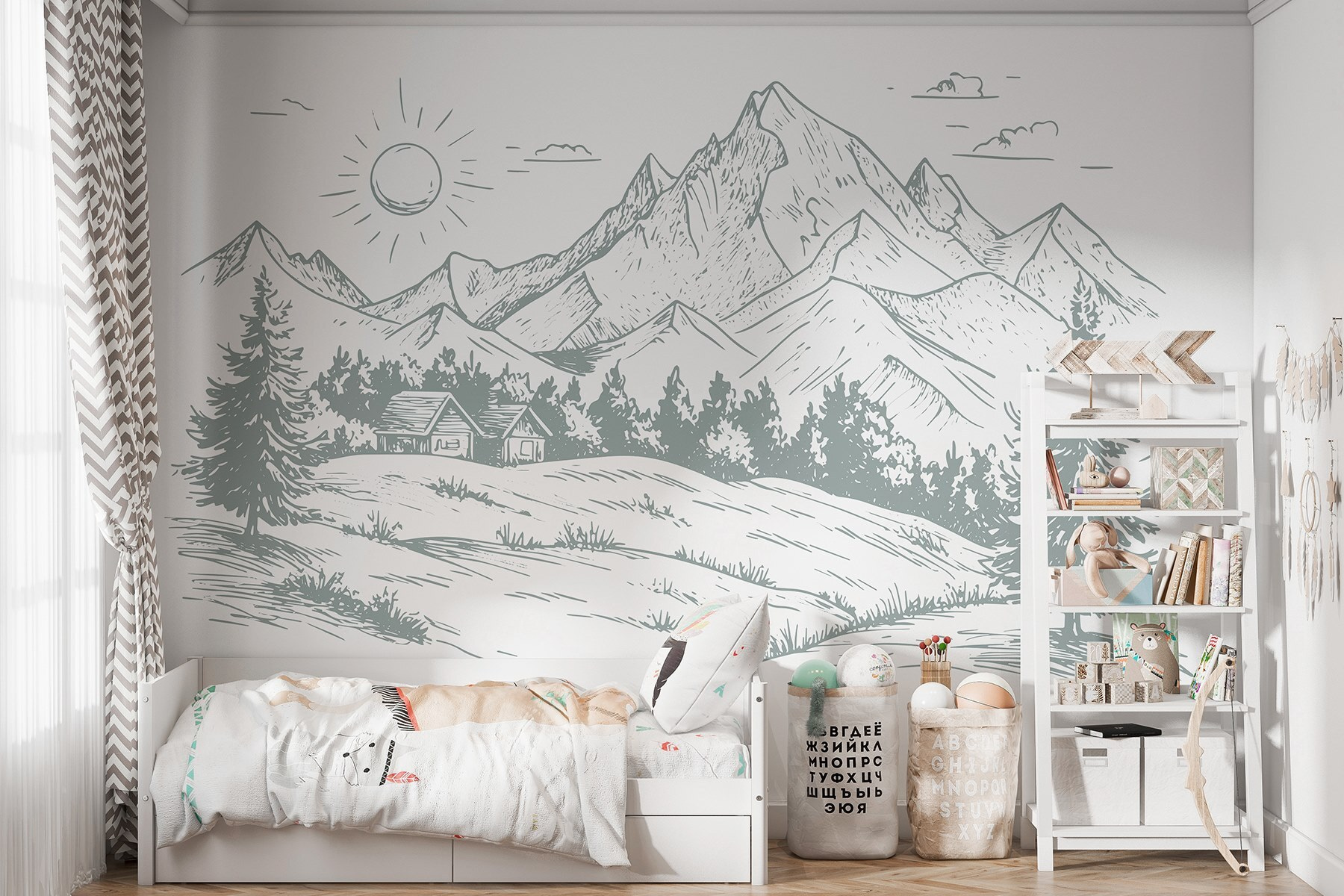 Verwandeln Sie jeden Raum in einen ruhigen Zufluchtsort mit dieser Fototapete, die eine wunderschöne Landschaft mit Bäumen und majestätischen Bergen zeigt. Stellen Sie sich vor, Sie wachen mit den sanften Konturen der Natur direkt in Ihrem Wohn- oder Schlafzimmer auf – das ist wie ein Mini-Urlaub jeden Tag. Die subtilen Details und sanften Linien schaffen eine beruhigende Atmosphäre, die perfekt ist, um nach einem langen Tag zu entspannen oder die Kreativität anzuregen. Stellen Sie sich vor, wie Ihre Freunde hereinspazieren und ihre Augen leuchten, wenn sie das frische, naturnahe Ambiente wahrnehmen. Das ist nicht nur Dekoration, sondern ein Hauch von frischer Luft für Ihre Wände!