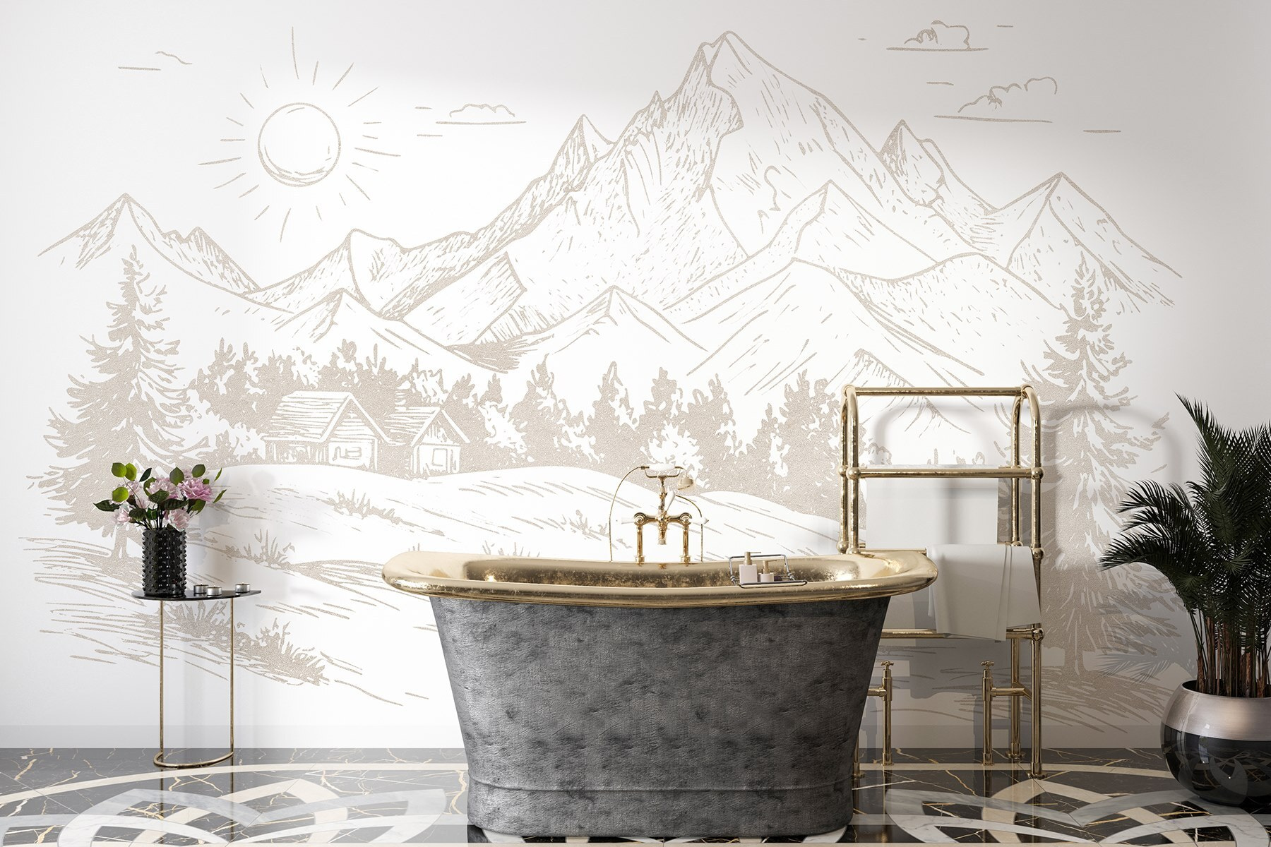 Verwandeln Sie jeden Raum mit dieser bezaubernden Fototapete, die eine heitere Landschaft direkt in Ihr Zuhause bringt. Stellen Sie sich majestätische Berge vor, die von üppigen Bäumen und sanften Hügeln flankiert werden. Es ist wie ein kleiner Urlaub, ohne die Couch zu verlassen! Stellen Sie sich vor, wie Sie Ihren Morgenkaffee schlürfen und dabei diesen Ausblick genießen – selbst die Vögel könnten ein wenig neidisch werden. Außerdem sorgen die weichen Linien und die erdigen Töne für eine gemütliche Atmosphäre. Dieses Wandbild eignet sich perfekt für eine rustikale Hütte oder einen schicken, modernen Raum. Es strahlt Ruhe aus und bringt einen Hauch von Naturschönheit überall hin.