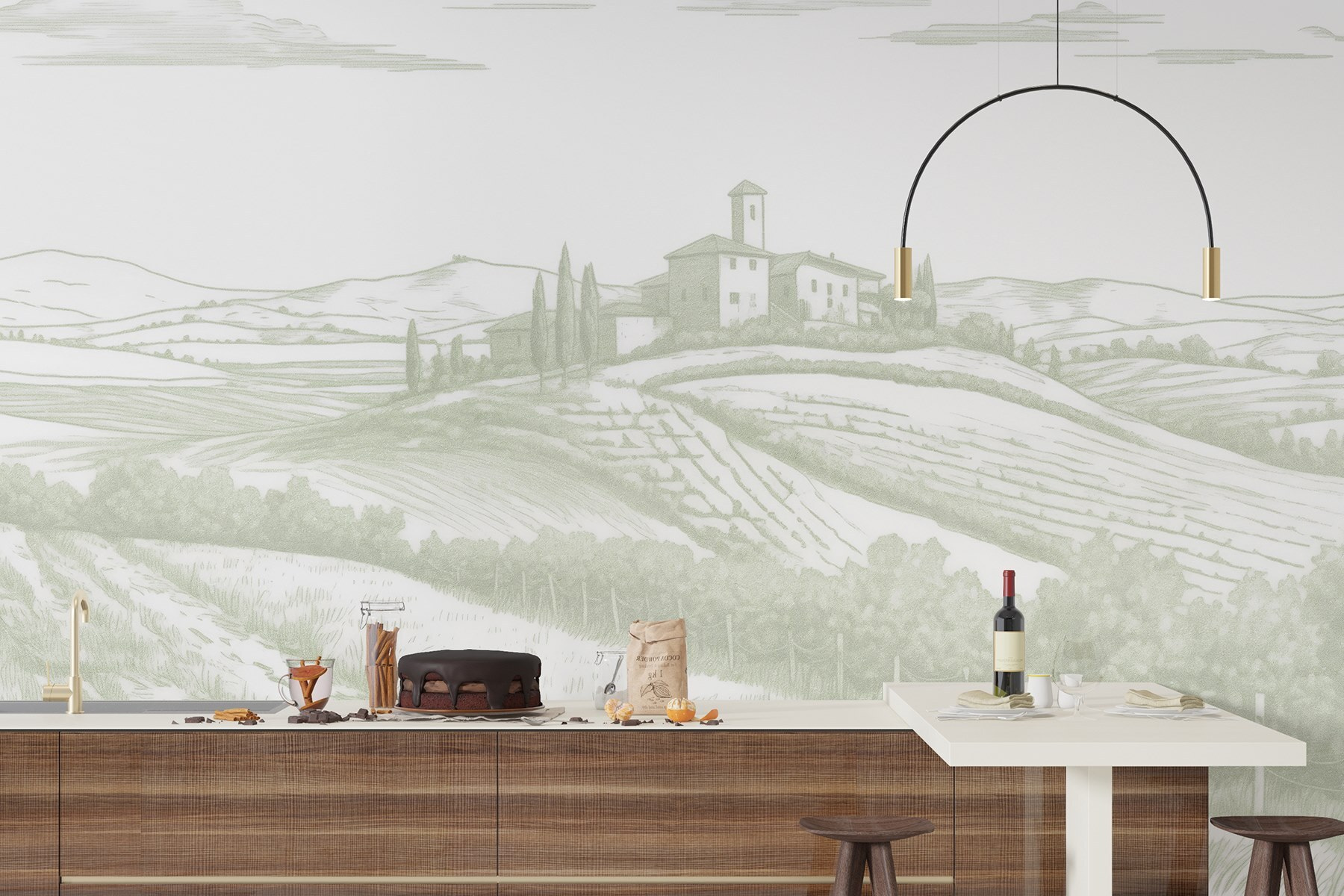 Verwandeln Sie jeden Raum in einen friedlichen Rückzugsort mit dieser wunderschönen Fototapete, die eine ruhige Landschaft zeigt. Stellen Sie sich diese sanften Hügel vor, ein charmantes Haus, das sich an die Landschaft schmiegt, und Felder, die sich wie eine warme Umarmung erstrecken. Es erinnert an einen verträumten Wochenendausflug aufs Land – genau das Richtige, um den Alltag ein wenig zu entschleunigen. Die sanften Farbtöne strahlen eine Ruhe aus, der man sich nur schwer entziehen kann. Es ist, als würde man sich die frische Luft und die Ruhe der Natur direkt nach Hause holen, ohne Allergien und Insektenstiche. Wer wünscht sich nicht ein kleines Stückchen Paradies, das man beim Kaffeetrinken bewundern kann?