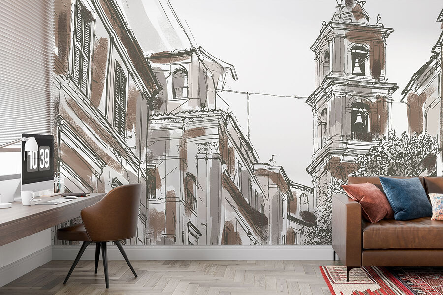 Verwandeln Sie Ihren Raum mit dieser atemberaubenden Fototapete, die ein wunderschön gezeichnetes Gebäude mit charmanten Glocken zeigt. Stellen Sie sich vor, Sie entspannen sich in einer gemütlichen Ecke, das Sonnenlicht strömt herein und diese Fototapete bringt einen Hauch von Architekturgeschichte direkt an Ihre Wände. Es ist wie ein sanftes Flüstern aus der Vergangenheit, bei dem jeder Blick zu Tagträumen von fernen Orten einlädt. Die subtilen Farbtöne schaffen eine warme Atmosphäre, die sich perfekt für ein Wohnzimmer oder eine ruhige Leseecke eignet. Wer würde sich nicht gerne von einem Wandbild entführen lassen, das wie eine kunstvolle Flucht wirkt?