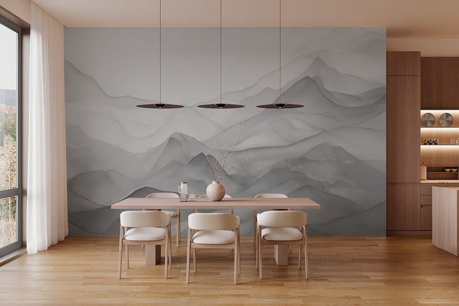 Verwandeln Sie Ihren Raum mit dieser Fototapete, die Eleganz und Abenteuer verströmt. Stellen Sie sich vor, Sie betreten einen Raum und haben das Gefühl, in eine ruhige Bergwelt einzutreten, in der sich graue und weiße Farbtöne sanft vermischen. Es ist perfekt, um eine entspannte Atmosphäre zu schaffen, sei es für den Rückzugsort eines Teenagers oder eine gemütliche Leseecke. Durch die sanften Farbverläufe wirkt es dynamisch und doch beruhigend, wie ein ruhiger Morgennebel über fernen Gipfeln. Stellen Sie sich vor: In einem Moment starren Sie auf die Wand, und im nächsten sind Sie in Tagträumen von fernen Orten verloren. Das lädt einfach zum Entspannen ein, nicht wahr? Ein kleines Stück Natur, ohne zu wandern!