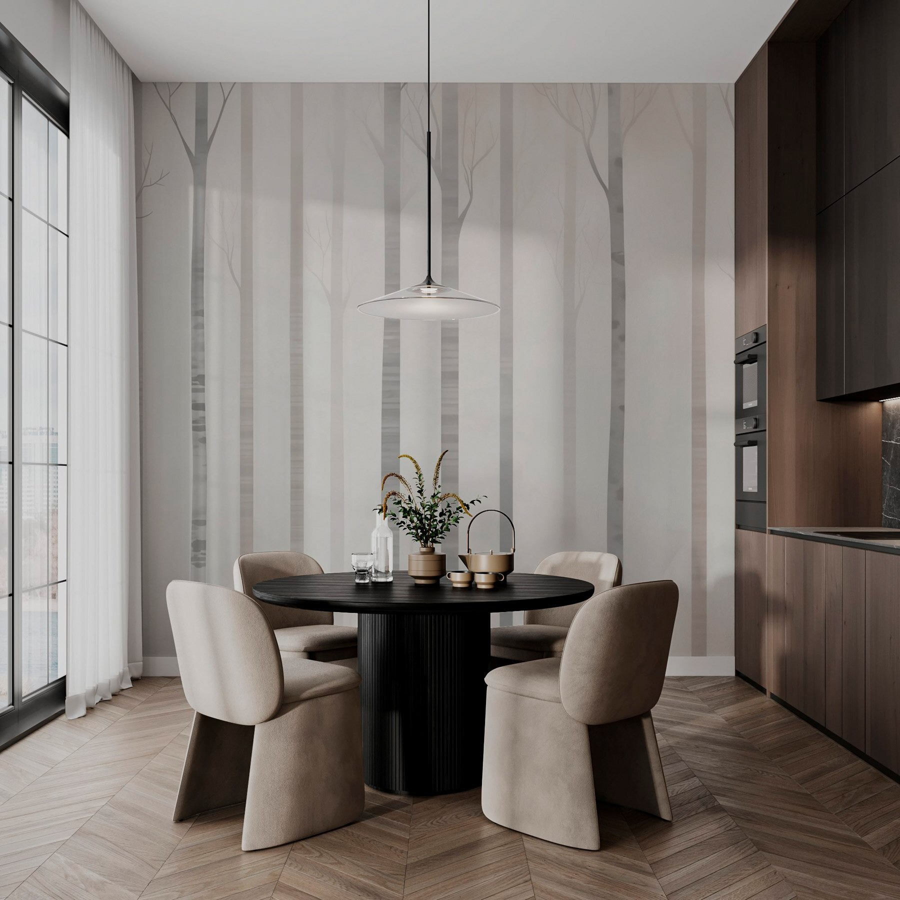 Sehen Sie sich vor dem Kauf genau an, wie Ihr Raum mit einer neuen Tapete aussehen wird. Professionelle Visualisierung durch erfahrene Designer ohne Kosten oder Kaufverpflichtung.