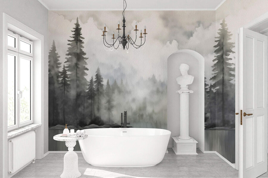 Stellen Sie sich vor, wie Sie hier gemütliche Abende verbringen, vielleicht einen Tee trinken oder sich mit einem Buch einkuscheln, während das Wandbild die Schönheit der Natur ins Haus holt. Es ist, als hätte man ein Fenster, das eine verträumte Landschaft einrahmt und die Ruhe des Waldes mühelos in die eigenen vier Wände bringt. Außerdem ist es ein toller Gesprächsanlass – Ihre Freunde werden neugierig sein, ob es sich um eine geheime Zuflucht oder einfach um unglaubliche Kunst handelt!