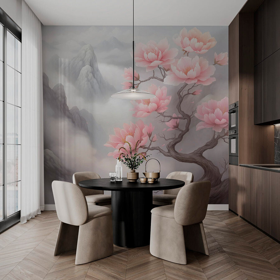 Verwandeln Sie jeden Raum mit dem bezaubernden “Fototapeten Tree with Pink Flowers”. Stellen Sie sich vor, Sie betreten jeden Tag eine ruhige Oase, in der zartrosa Blüten vor der Kulisse nebliger Berge blühen. Es ist, als hätten Sie ein Stück Natur direkt an der Wand, das Wärme und Gelassenheit in Ihren Raum bringt.