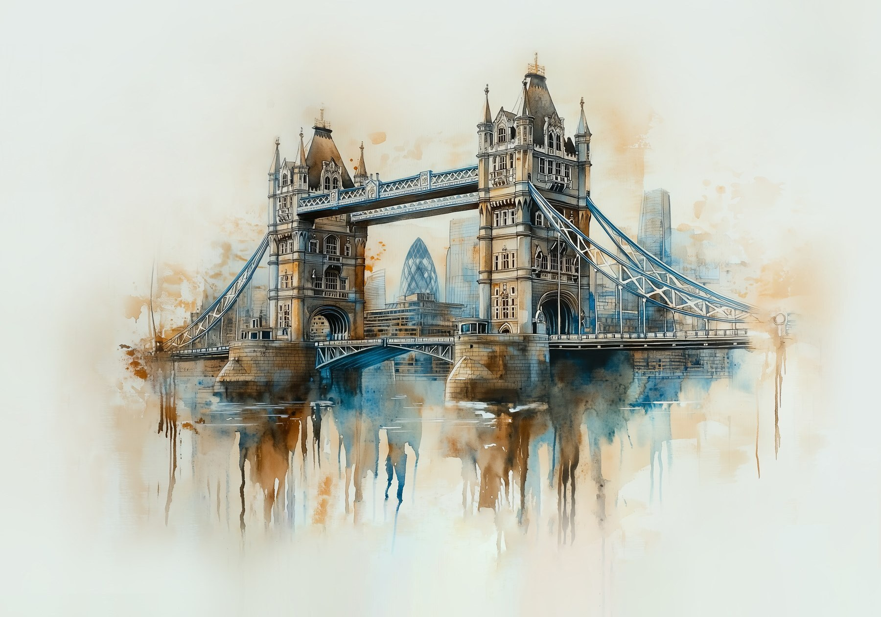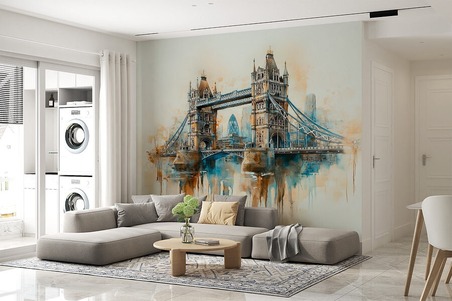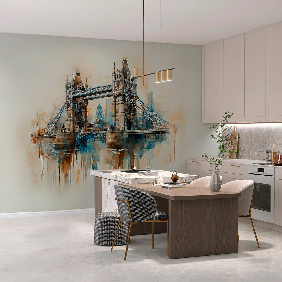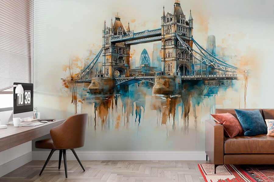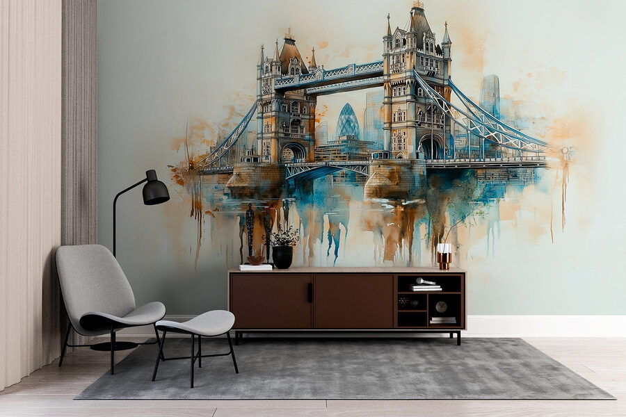 Verwandeln Sie Ihren Raum mit dieser atemberaubenden Aquarellwandmalerei einer Brücke, die eine reizvolle Anspielung auf das Stadtleben ist. Stellen Sie sich vor: Sie betreten Ihr Zimmer und werden von einer ruhigen, verträumten Szene begrüßt, die mühelos Farben mischt und den Charme von Stadtlandschaften einfängt. Jedes Mal, wenn Sie daran vorbeigehen, ist es wie ein Mini-Urlaub!