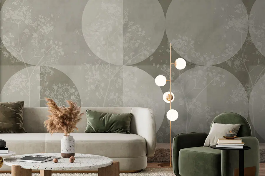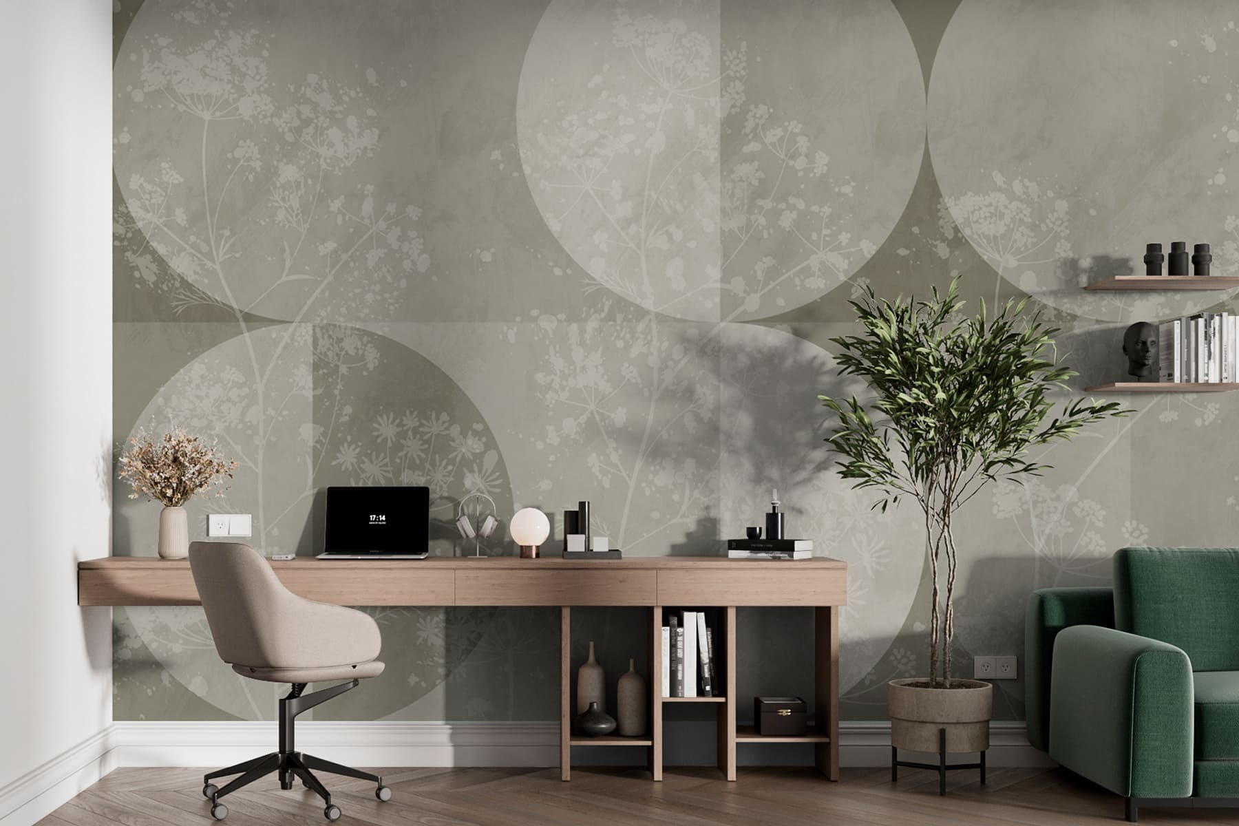 Verwandeln Sie Ihren Raum mit dieser bezaubernden Fototapete, die mühelos eine graue und weiße Farbpalette mit zarten Kreisen und verspielten Blumen kombiniert. Stellen Sie sich vor, Sie wachen vor dieser weichen, verträumten Kulisse auf, die jede Tasse Kaffee zu einem besonderen Ereignis werden lässt. Es ist, als hätten Sie einen ruhigen Garten im Freien direkt in Ihrem Wohnzimmer. Der Aquarelleffekt sorgt für einen Hauch von Laune, als ob sich jede Blume sanft in einer leichten Brise wiegen würde. Perfekt für eine gemütliche Sitzecke oder einen kreativen Arbeitsbereich, vermittelt sie eine ruhige Atmosphäre, die einfach sagt: “Entspann dich, du schaffst das.” Egal, ob Sie Freunde einladen oder alleine sind, diese Fototapete sorgt für eine aufmunternde Atmosphäre – wie eine warme Umarmung für Ihre Wände.