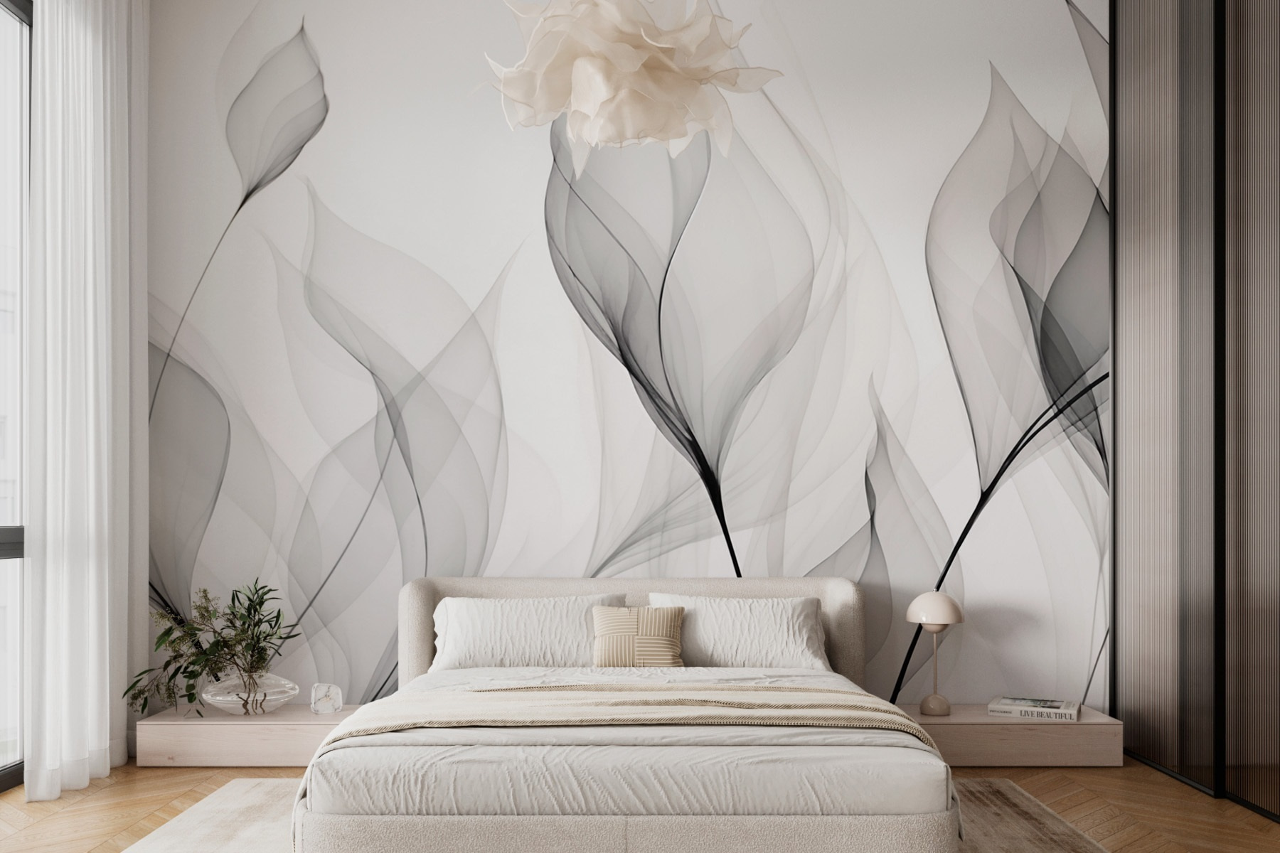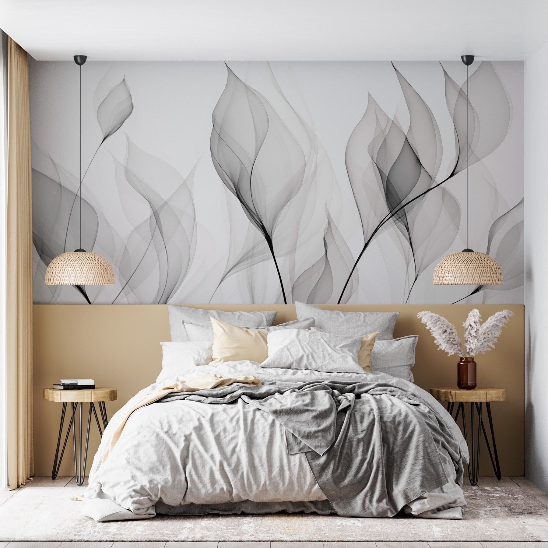 Verwandeln Sie jede Wand in einen traumhaften Rückzugsort mit dieser atemberaubenden schwarz-weißen Fototapete, die elegante Blumen zeigt. Jedes Mal, wenn Sie vorbeigehen, ist es, als würden Sie in eine sanfte, blumige Brise treten. Das zarte Design vermittelt ein Gefühl von Ruhe und Gelassenheit und eignet sich perfekt für eine gemütliche Leseecke oder ein lebhaftes Wohnzimmer. Stellen Sie sich vor, Sie machen es sich mit einem Buch gemütlich und sind von diesen anmutigen Blüten umgeben – und plötzlich ist die Welt da draußen wie weggeblasen. Ganz gleich, ob Sie einem modernen Raum einen sanften Touch verleihen oder eine klassische Atmosphäre unterstreichen, dieses Wandbild lässt einen Raum lebendig und entspannt wirken. Eine Prise Charme der Natur für Ihr Zuhause!