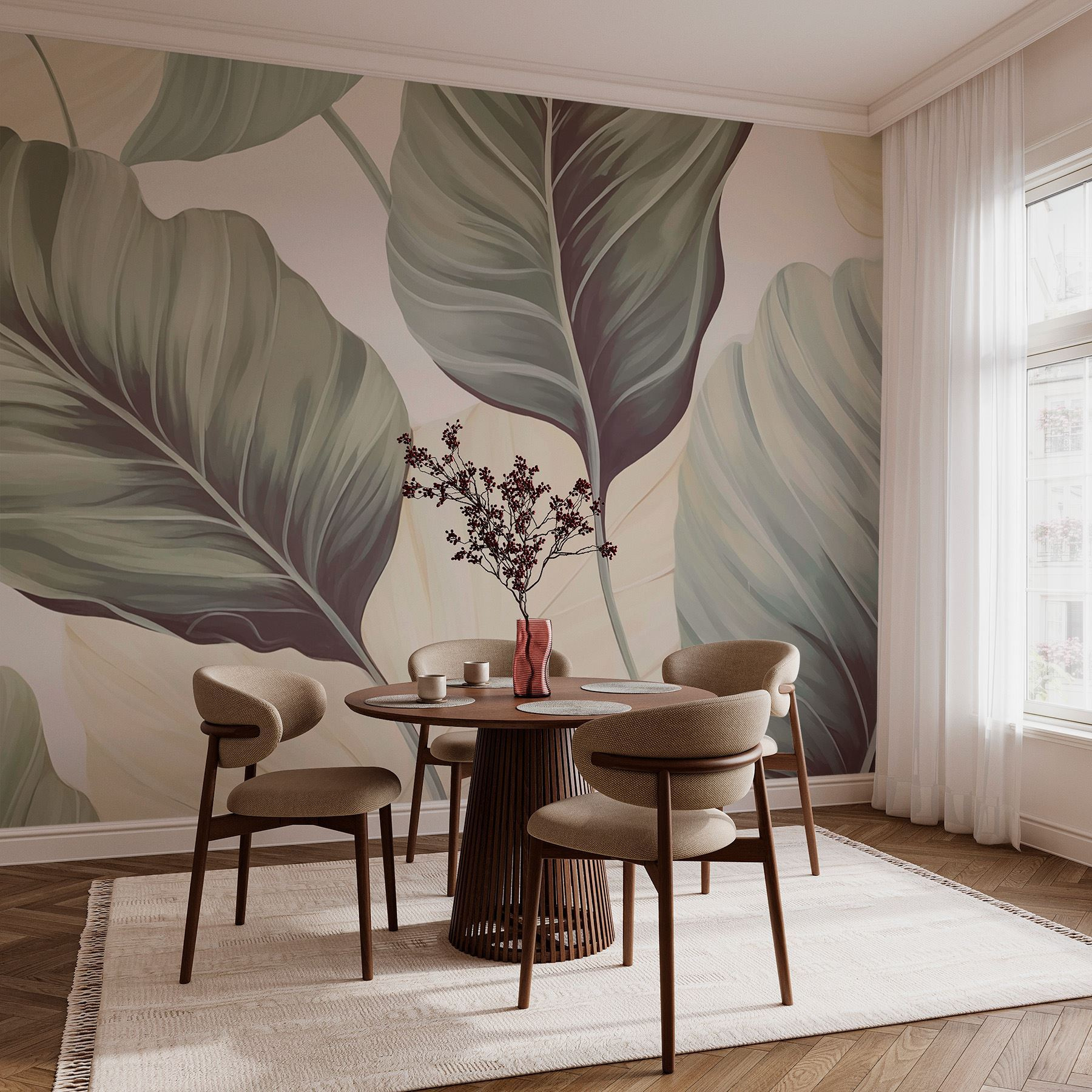 Verwandeln Sie jeden Raum in einen ruhigen Zufluchtsort mit dieser atemberaubenden Fototapete mit eleganten Blattmustern, die die Ruhe der Natur widerspiegeln. Stellen Sie sich vor, Sie betreten eine gemütliche Ecke, in der die sanften Grüntöne und das weiche Weiß eine beruhigende Kulisse bilden. Es ist, als würde man sich ein Stückchen Garten in den Wohnraum holen. Perfekt für die Tage, an denen Sie sich mit einer Tasse Tee oder einem guten Buch entspannen möchten. Außerdem passt das Design gut zu verschiedenen Stilen – egal, ob Sie minimalistisch oder ein bisschen boho sind. Fügen Sie ein paar bequeme Kissen hinzu, und voilà, sofortige Entspannungszone!