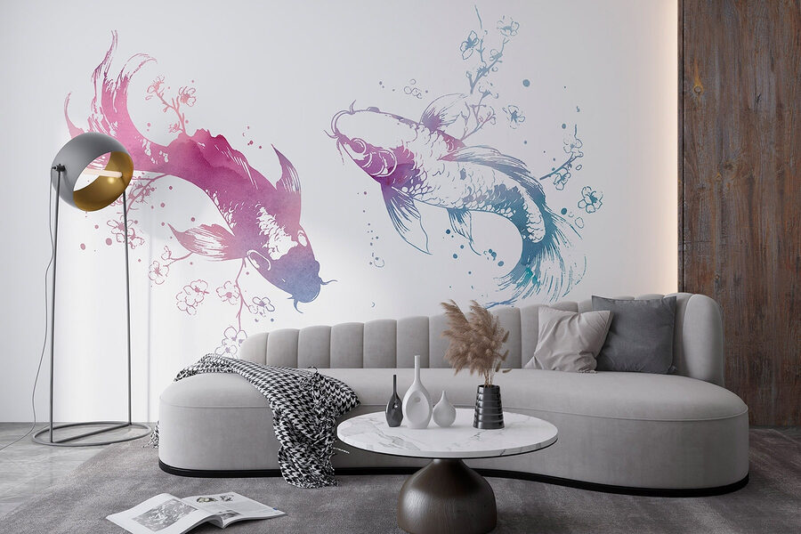 Verwandeln Sie Ihren Raum mit dieser bezaubernden Fototapete mit zwei eleganten Fischen, die inmitten von Aquarellspritzern schwimmen. Es ist, als würde man sich ein Stück Meer nach Hause holen, nur ohne den Sand in den Schuhen. Sanfte Farbtöne tanzen über das Wandbild und rufen ein Gefühl der Ruhe hervor, das jeden Raum aufhellen kann. Stellen Sie sich vor, Sie sitzen in einer gemütlichen Ecke und schlürfen einen Tee, während diese anmutigen Fische vorbeigleiten – vielleicht vergessen Sie sogar, dass Sie sich in einem Raum befinden. Es ist eine charmante Note, die Raffinesse und Gelassenheit ausstrahlt und perfekt ist, um eine friedliche Atmosphäre zu schaffen. Wundern Sie sich nicht, wenn Sie anfangen, mit den Fischen zu plaudern; vielleicht haben sie Ihnen ja etwas zu erzählen!