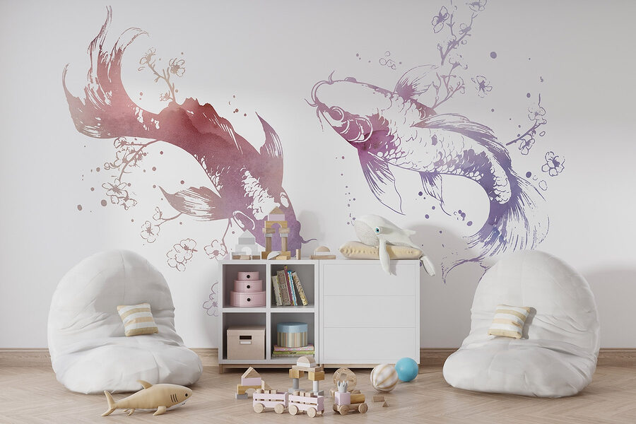 Verwandeln Sie Ihren Raum in ein wässriges Wunderland mit dieser bezaubernden Fototapete, auf der zwei anmutige Fische durch zarte Blumen und wirbelnde Blätter schwimmen. Stellen Sie sich vor, Sie würden in eine heitere Unterwasserwelt eintauchen, in der Kunst an Ihren Wänden tanzt und Ruhe und Kreativität hervorruft. Der Aquarellstil dieses Wandbildes verleiht ihm einen skurrilen Touch und macht es perfekt für eine gemütliche Leseecke oder einen luftigen Wohnbereich mit Strandmotiven. Stellen Sie sich vor, Sie schlürfen einen Tee, während die Fische sanft an Ihnen vorbeigleiten und die Natur direkt in Ihr Zuhause bringen. Es ist wie Ihre eigene persönliche Oase, nur ohne nasse Füße und Seetang!