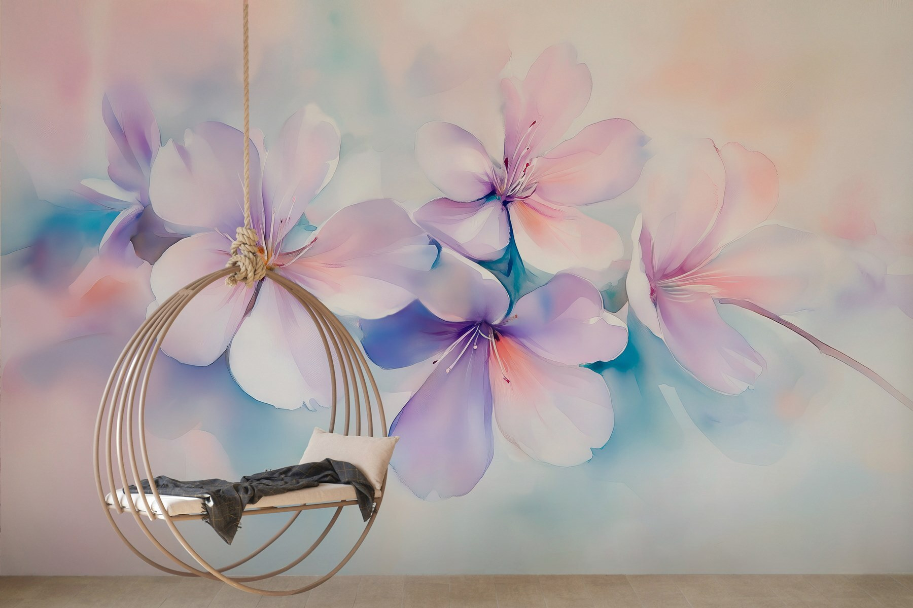 Stellen Sie sich vor, Sie betreten einen verträumten japanischen Garten, direkt von Ihrem Wohnzimmer aus. Dieses Wandbild mit einer hübschen Gruppe violetter Blumen vermittelt ein Gefühl von Ruhe und Schönheit, das sich wie eine sanfte Umarmung für Ihr Zuhause anfühlt. Der weiche Aquarellstil lässt jedes Blütenblatt sanft flattern und verleiht jedem Raum einen Hauch von Laune. Stellen Sie sich vor, Sie machen es sich mit einem guten Buch gemütlich, umgeben von diesen Blüten, und verwandeln einen gewöhnlichen Tag sofort in einen friedlichen Rückzugsort. Es ist, als würde man sich die Natur ins Haus holen – nur ohne die Bienen! Eine perfekte Art, ein Schlafzimmer zu verschönern oder eine gemütliche Leseecke zu verschönern.