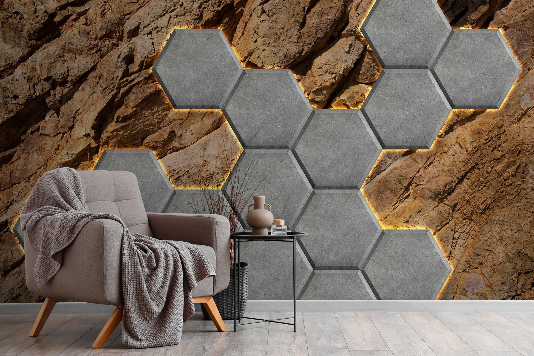 Verwandeln Sie Ihren Raum mit dieser Fototapete mit atemberaubenden Sechsecken vor einem schroffen Felshintergrund. Es ist, als würde man sich ein Stück Natur ins Haus holen und jedem Raum einen Hauch von Erdigkeit verleihen. Stellen Sie sich vor, Sie schlürfen einen Kaffee und genießen die warme, strukturierte Atmosphäre – es wird wie ein kleiner Rückzugsort sein. Das Steindesign ist nicht nur optisch ansprechend, sondern sorgt auch sofort für Gesprächsstoff. Vielleicht lehnen sich Ihre Freunde ein wenig näher heran, um die Details zu bewundern. Außerdem passt es sowohl zum modernen als auch zum rustikalen Stil. Eine Abwandlung der Tradition, die sich einfach richtig anfühlt.