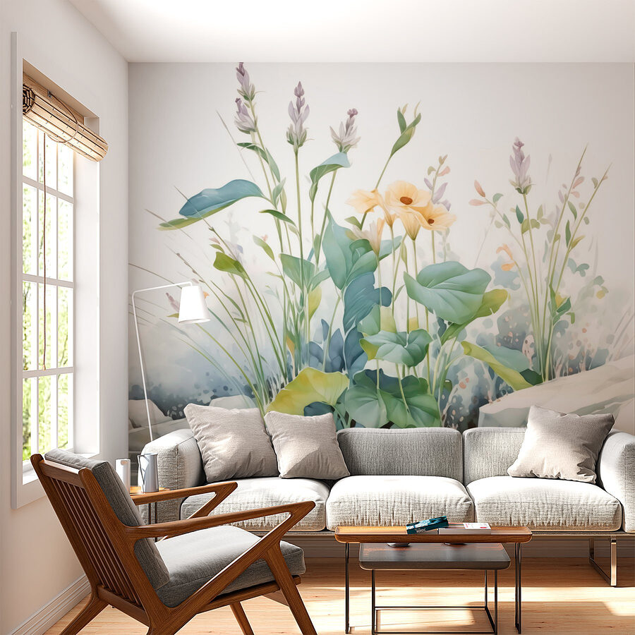 Verwandeln Sie jeden Raum mit dieser “Wandmalerei mit Blumen und Pflanzen”. Stellen Sie sich vor, Sie betreten einen heiteren Garten, ohne Ihr Haus zu verlassen. Die zarten Blütenblätter und das üppige Grün laden einen geradezu ein, nicht wahr? Es ist wie eine Umarmung durch die Natur nach einem langen Tag. Stellen Sie sich vor, wie diese Schönheit ein Wohnzimmer erhellt oder einer gemütlichen Leseecke ein wenig Charme verleiht – perfekt, um zu träumen oder sich in einem Buch zu verlieren. Die sanften Farben fließen zusammen wie eine ruhige Brise und schaffen eine beruhigende Atmosphäre. Wer hätte gedacht, dass ein Wandbild eine Wand in einen malerischen Rückzugsort verwandeln kann?