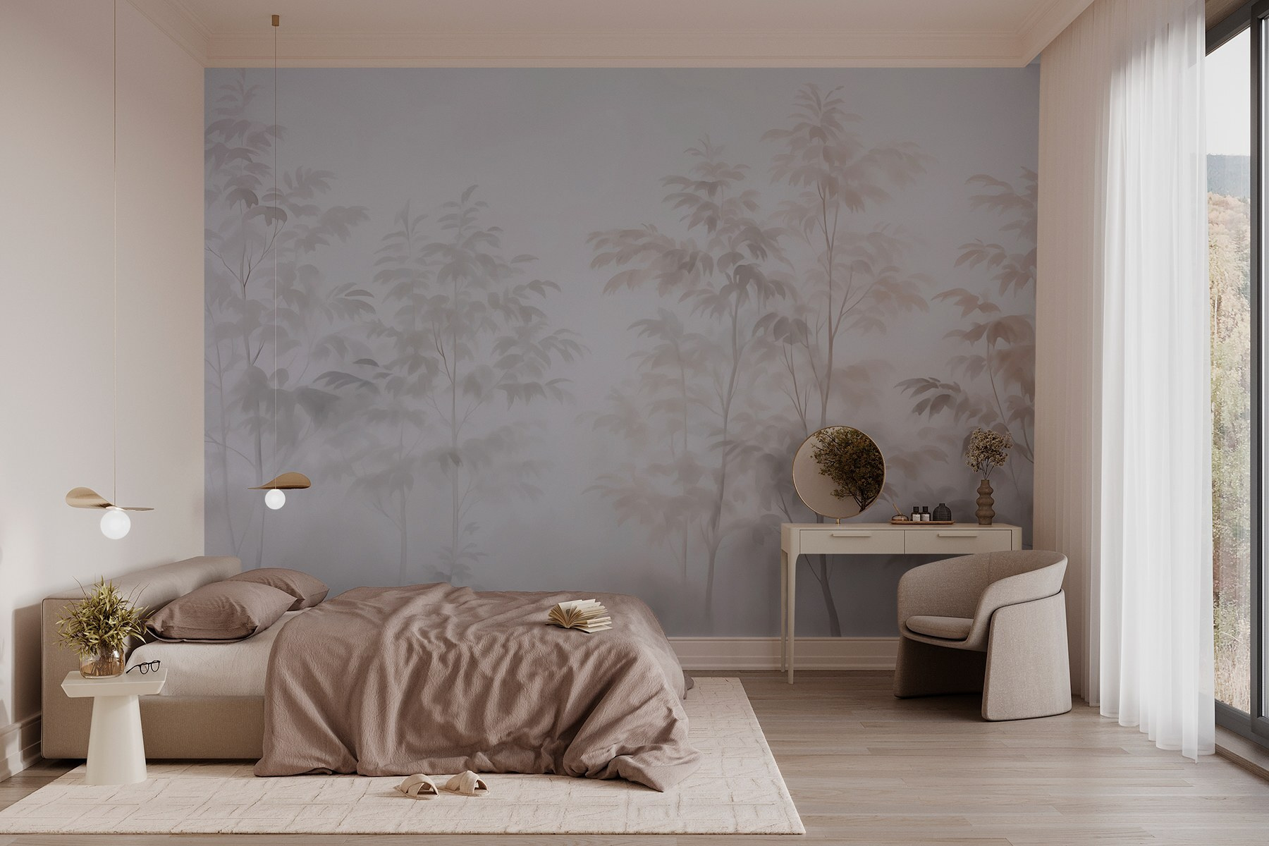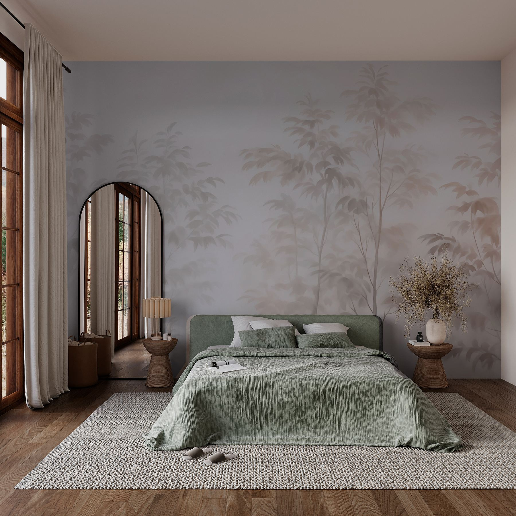 Verwandeln Sie Ihren Raum mit “Trees in the Fog”, wo ätherische Silhouetten von Bäumen anmutig mit sanftem Nebel verschmelzen. Es ist, als würde man in einen friedlichen Wald eintauchen, ohne das Haus zu verlassen. Stellen Sie sich vor, Sie schlürfen einen Kaffee, während Sie diese sanfte Szene betrachten – es ist beruhigend, fast meditativ. Die gedämpften Töne schaffen eine beruhigende Kulisse, die sich perfekt für Wohnzimmer oder gemütliche Ecken eignet. Freunde könnten sagen, dass es sich wie ein mysteriöser Traum anfühlt, ein geheimes Waldgebiet, das sich nur eine Wand entfernt versteckt! Holen Sie sich ein Stück Natur ins Haus und spüren Sie, wie Ihre Sorgen im Nebel verschwinden. Legen Sie einfach bequeme Kissen und vielleicht ein gutes Buch dazu.