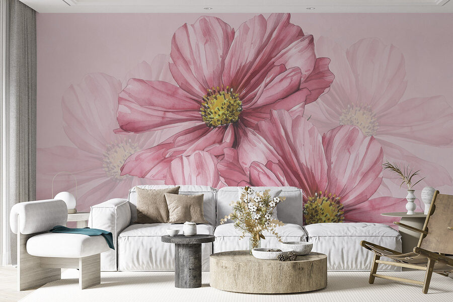 Verwandeln Sie Ihren Raum in ein blühendes Paradies mit dieser bezaubernden Fototapete, die eine entzückende Gruppe von rosa Blumen zeigt. Stellen Sie sich vor, Sie betreten einen Raum, in dem diese zarten Aquarellblütenblätter Geschichten vom Frühling zu flüstern scheinen. Die zarten Rosatöne vor dem sanften Hintergrund vermitteln ein Gefühl der Gelassenheit und eignen sich daher perfekt für eine gemütliche Leseecke oder ein lebhaftes Wohnzimmer. Freunde werden vielleicht sogar sagen, wie fröhlich sie sich fühlen, fast so, als könnten sie die Blumen riechen. Es ist, als hätte man einen Garten, ohne sich um das Gießen oder Unkrautjäten kümmern zu müssen – einfach nur pure, unbeschwerte Freude! Also los, lassen Sie dieses Wandbild einen Hauch von Wärme und Glück in Ihr Zuhause bringen.