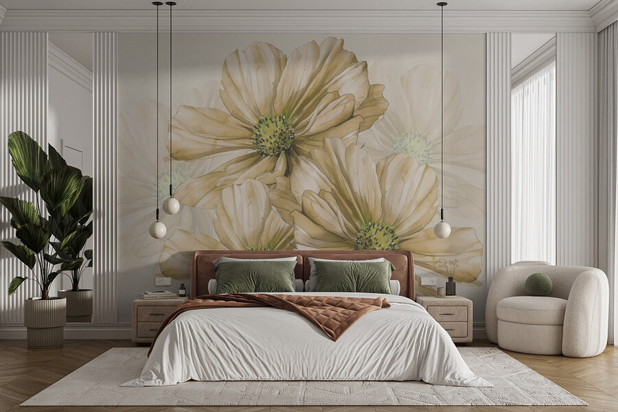 Verwandeln Sie jeden Raum in einen ruhigen Rückzugsort mit dieser Wandtapete, die eine bezaubernde Gruppe von Blumen zeigt. Stellen Sie sich diese zarten Blüten mit ihren bezaubernden grünen Zentren vor, die sich sanft in einer Brise wiegen – es ist, als hätten Sie einen frischen Garten in Ihrem Zuhause. Dieses Aquarell ist ideal für Naturliebhaber oder alle, die sich einen Hauch von Ruhe wünschen, und versetzt Sie in sonnige Tage und warme Stimmung. Stellen Sie sich vor, Sie schlürfen einen Tee, während Sie dieses Wandbild betrachten, und lassen Sie Ihre Fantasie durch Felder der Träume spazieren gehen. Es ist mehr als nur Dekoration, es ist eine Einladung zum Entspannen und Durchatmen. Nehmen Sie die Schönheit an und lassen Sie sie Ihren Tag erhellen.