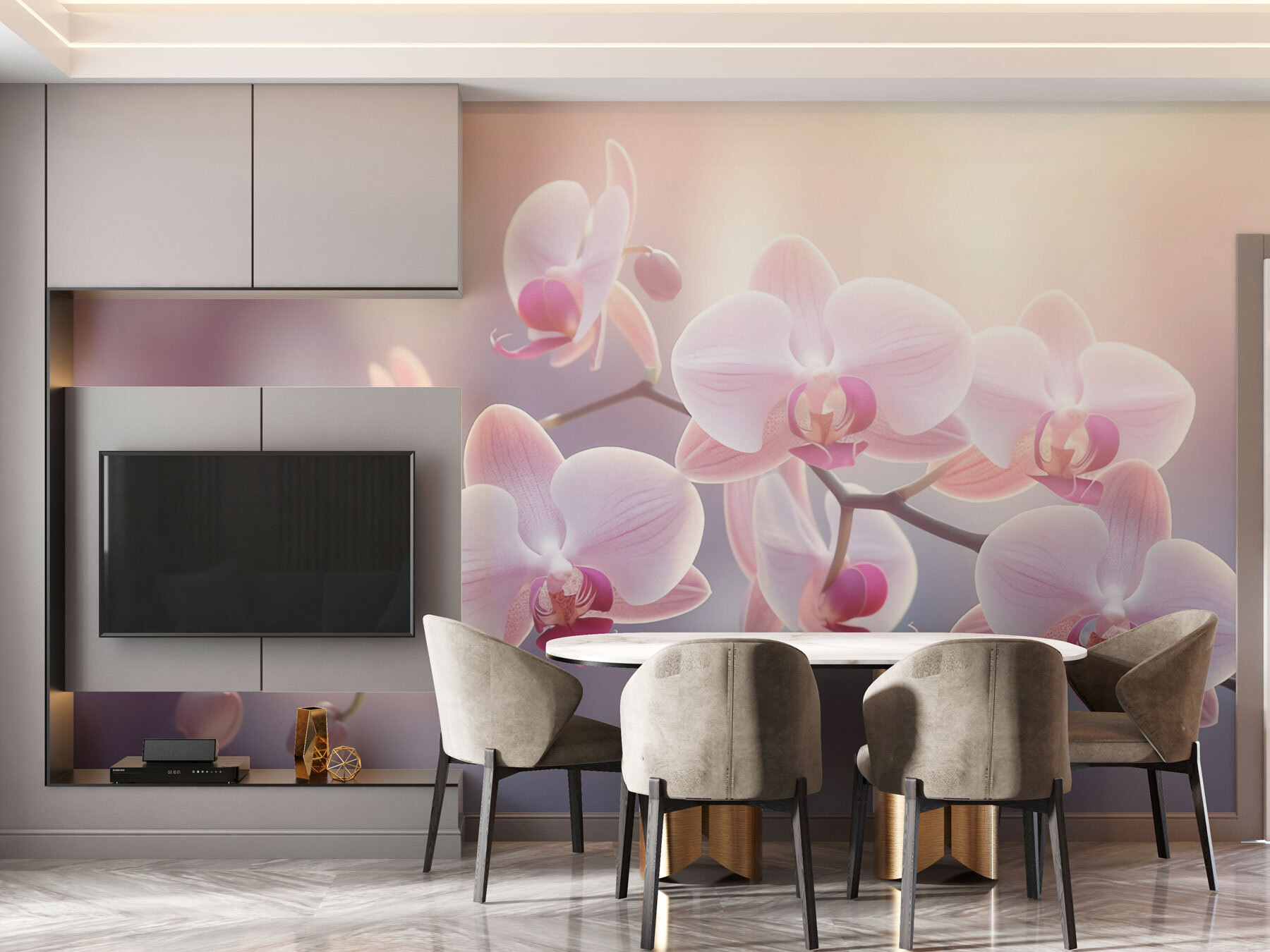 Verwandeln Sie Ihren Raum mit der Fototapete “Delicate Blooms in Soft Light”, einer bezaubernden Blumenpracht, die Ihre Gäste dazu bringen wird, Ihre Wände zu bewundern und nicht nur Ihre Snacks. Stellen Sie sich vor, Sie betreten einen Raum, der sich anfühlt wie ein heiterer Garten im Frühling, in dem sanfte Farbtöne blühender Orchideen eine beruhigende Atmosphäre schaffen. Stellen Sie sich faule Nachmittage im sanften Licht vor, mit einer Tasse Tee in der Hand, während diese lieblichen Blüten süße Nichtigkeiten flüstern. Es ist, als hätte man einen gemütlichen Freund an der Wand, der einen daran erinnert, dass die kleinen Momente des Lebens es verdienen, gefeiert zu werden. Diese Fototapete eignet sich perfekt zur Verschönerung jeder Ecke und ist eine wunderbare Ergänzung für jeden, der ein bisschen florale Finesse in seinem Leben sucht. Also los, holen Sie sich diese blumige Umarmung nach Hause!