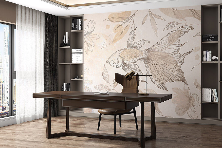 Verwandeln Sie Ihren Raum mit dem bezaubernden Wandbild “Delicate Fish Among Leafy Patterns”. Stellen Sie sich vor, Sie treten in eine heitere Unterwasserwelt ein, in der ein anmutiger Fisch zwischen verträumten Blättern in Aquarellfarben dahingleitet. Es ist, als hätte man einen Hauch von Natur direkt an der Wand, der ruhige Schwingungen ausstrahlt. Jedes Mal, wenn Sie daran vorbeigehen, werden Sie vielleicht an ruhige Tage an einem Teich oder an die einfachen Freuden eines sonnigen Nachmittags erinnert. Dieses Wandbild eignet sich perfekt für ein Wohnzimmer oder eine gemütliche Ecke und verleiht einen sanften Hauch von Laune, ohne die Sinne zu überwältigen. Tauchen Sie ein und lassen Sie die guten Schwingungen fließen!