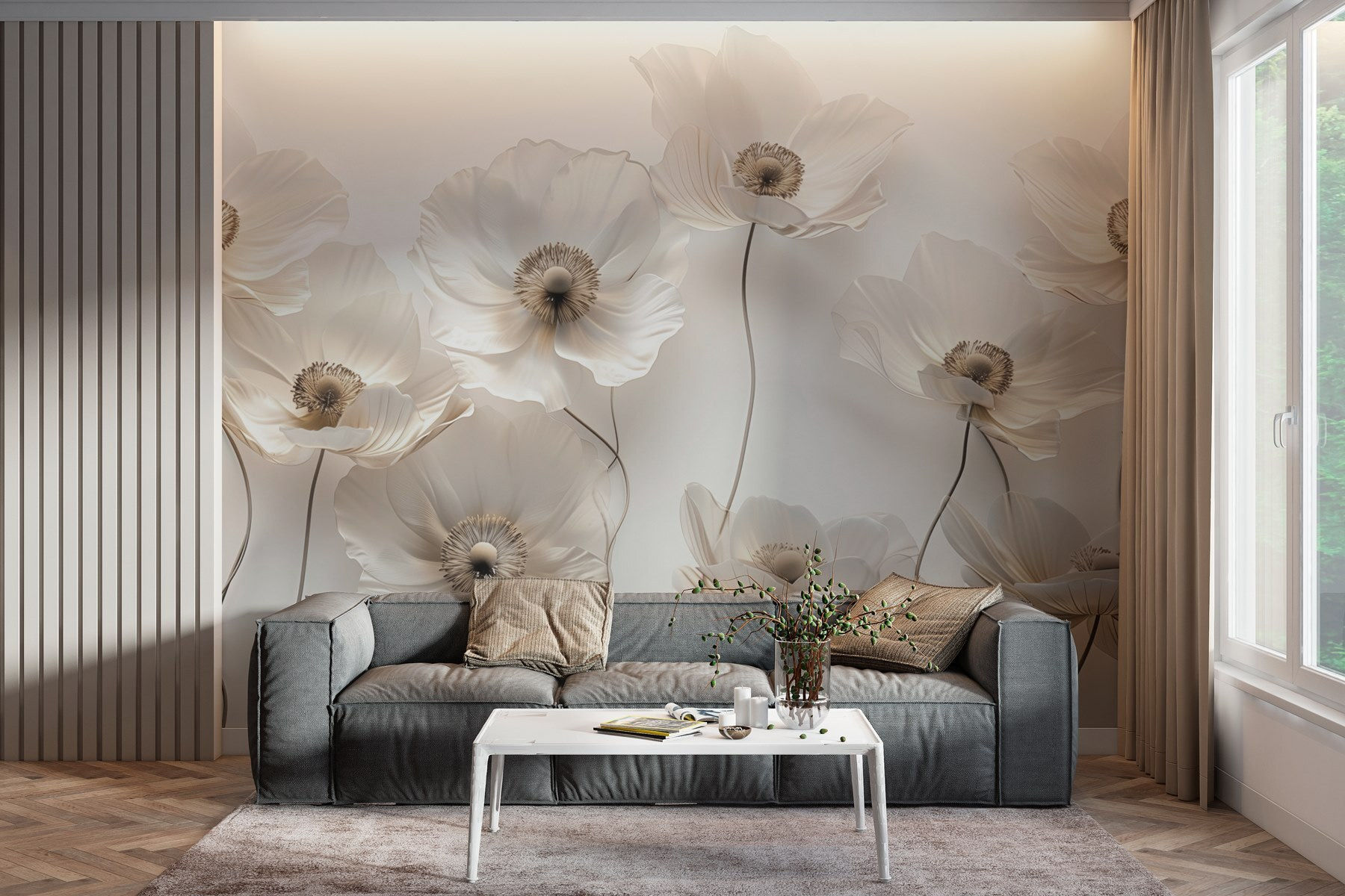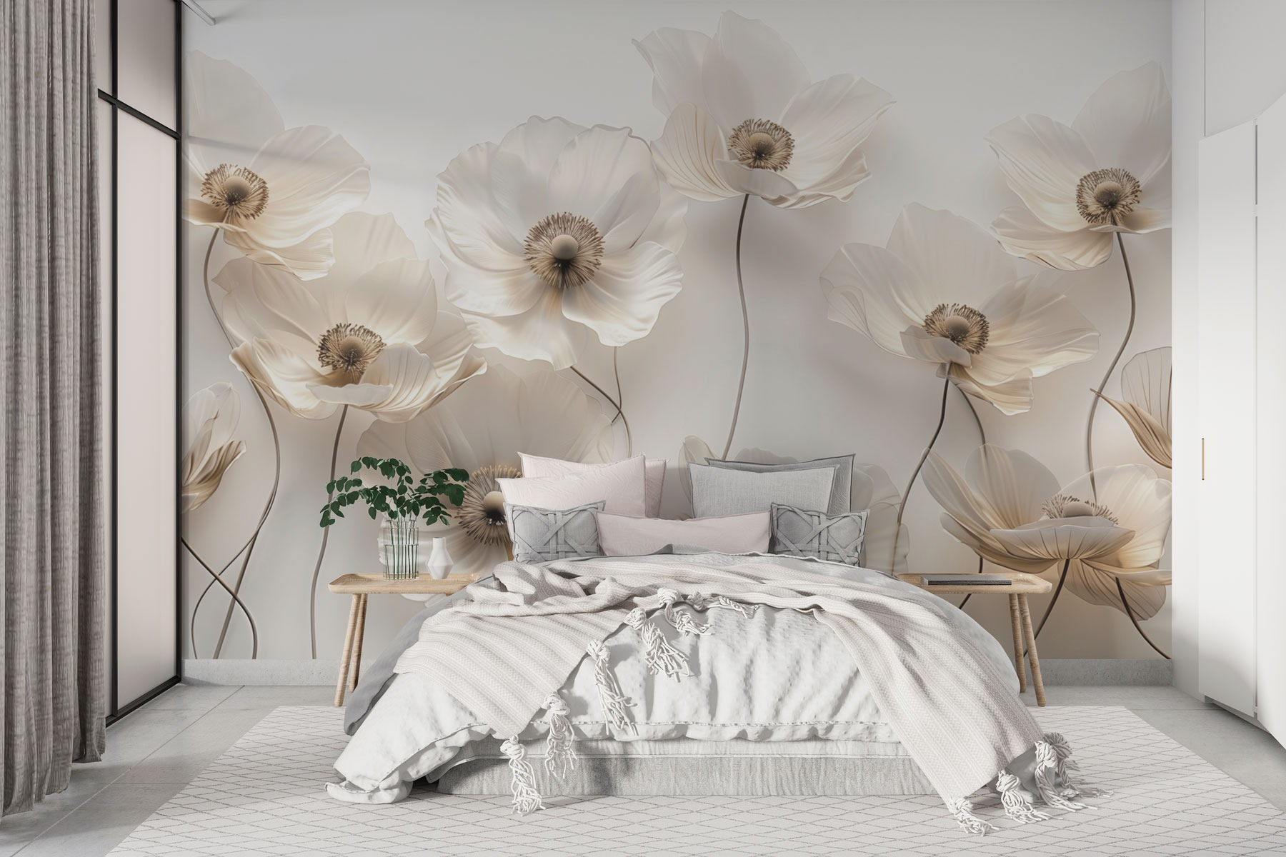 Erhellen Sie jeden Raum mit dieser atemberaubenden Fototapete, die eine schöne Gruppe weißer Blumen zeigt, die wie eine sanfte Frühlingsbrise wirken. Stellen Sie sich vor, Sie betreten Ihren Raum und werden von ihrer sanften Eleganz begrüßt, die ein Gefühl der Ruhe vermittelt. Diese Blüten sehen nicht nur hübsch aus, sie hauchen einer tristen Wand Leben ein und verwandeln sie in eine gemütliche Ecke der Natur. Perfekt für ein Wohn- oder Schlafzimmer, ziehen sie nicht nur die Blicke auf sich, sondern laden auch zu Gesprächen ein. Wer würde sich nicht gerne über diese schönen Blumen unterhalten? Es ist, als hätte man einen Garten im Haus, nur ohne die Gießkanne. Verleihen Sie diesem Wandbild einen Hauch von Laune und Charme, und lassen Sie den floralen Zauber sich entfalten.