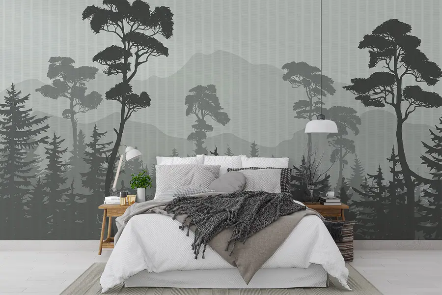 Verwandeln Sie jeden Raum in einen ruhigen Zufluchtsort mit dieser atemberaubenden Fototapete, die eine verträumte Waldszene zeigt. Stellen Sie sich die hoch aufragenden Bäume und majestätischen Berge vor, die eine beruhigende Stimmung verbreiten, als ob Sie direkt von Ihrem Wohnraum aus in einen Rückzugsort in der Natur treten würden. Es ist, als hätte man eine gemütliche Hütte im Wald, ohne das lästige Packen. Die kühlen Töne verleihen ihm eine schicke, moderne Note und machen es perfekt für ein stilvolles Büro oder eine entspannte Leseecke. Freunde werden bestimmt sagen, wie erfrischend die Atmosphäre ist. Wer wünscht sich nicht ein bisschen Waldzauber für sein Zuhause? Stellen Sie sich vor, Sie schlürfen einen Kaffee und blicken auf die Bäume – und haben sofort Ruhe!