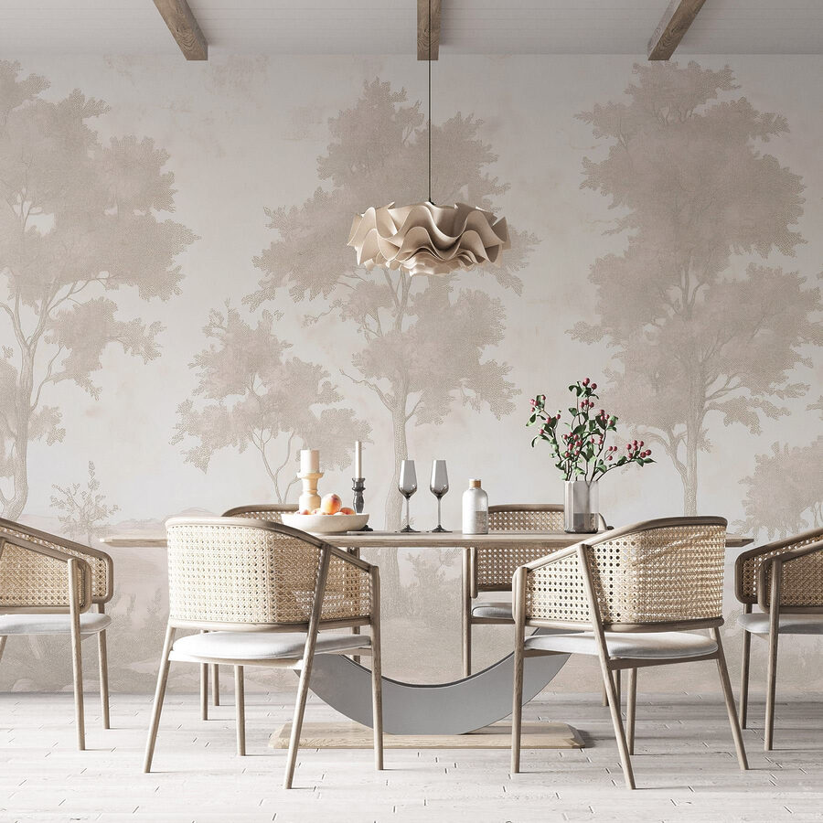 Verwandeln Sie jeden Raum in einen ruhigen Rückzugsort mit dieser atemberaubenden Fototapete, die eine Gruppe von Bäumen in einer verschneiten Landschaft zeigt. Stellen Sie sich vor, Sie machen es sich mit einer Tasse Kakao gemütlich und betrachten die zarten, weiß verschneiten Äste – ein wahres Glücksgefühl. Die natürliche Ausstrahlung, die dieses Kunstwerk ausstrahlt, kann einen Raum wie einen friedlichen Rückzugsort im Wald erscheinen lassen. Es ist, als ob man sich ein Winterwunderland ins Haus holt, nur ohne die Kälte! Dieses Wandbild ist perfekt für alle, die subtile Schönheit zu schätzen wissen, und lädt zum Träumen und gemütlichen Beisammensein ein. Es ist eine sanfte Erinnerung an die Ruhe der Natur, perfekt für ein Wohnzimmer oder eine ruhige Leseecke.