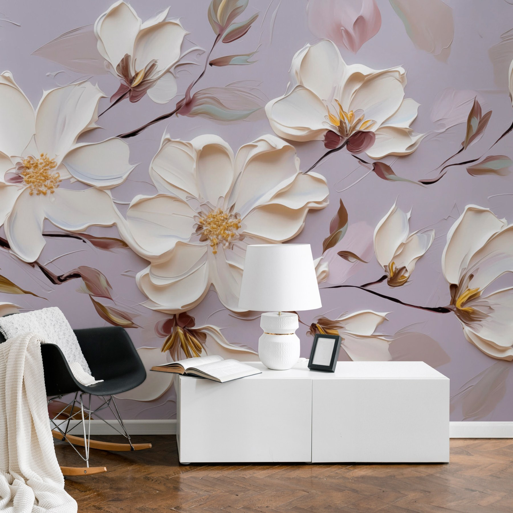 Verwandeln Sie jeden Raum in einen bezaubernden Zufluchtsort mit dieser Wandtapete mit zarten weißen Blumen. Stellen Sie sich vor, Sie betreten Ihren Raum und werden von diesen atemberaubenden Blüten begrüßt, die Ihnen Geschichten von Gelassenheit und Anmut zuflüstern. Die sanften Farbtöne und die filigranen Details rufen ein Gefühl der Ruhe hervor, fast wie eine sanfte Brise an einem warmen Tag. Sie eignen sich perfekt für eine gemütliche Leseecke oder ein verträumtes Schlafzimmer und sind wie ein Stück Natur im Haus – nur ohne Pollen. Ihre Freunde werden staunen, und Sie werden sich vielleicht sogar dabei ertappen, wie Sie ein wenig länger als sonst in der Schönheit Ihrer blumigen Oase träumen. Machen Sie einen Schritt in diese blumige Fantasie und lassen Sie den Charme sich entfalten!