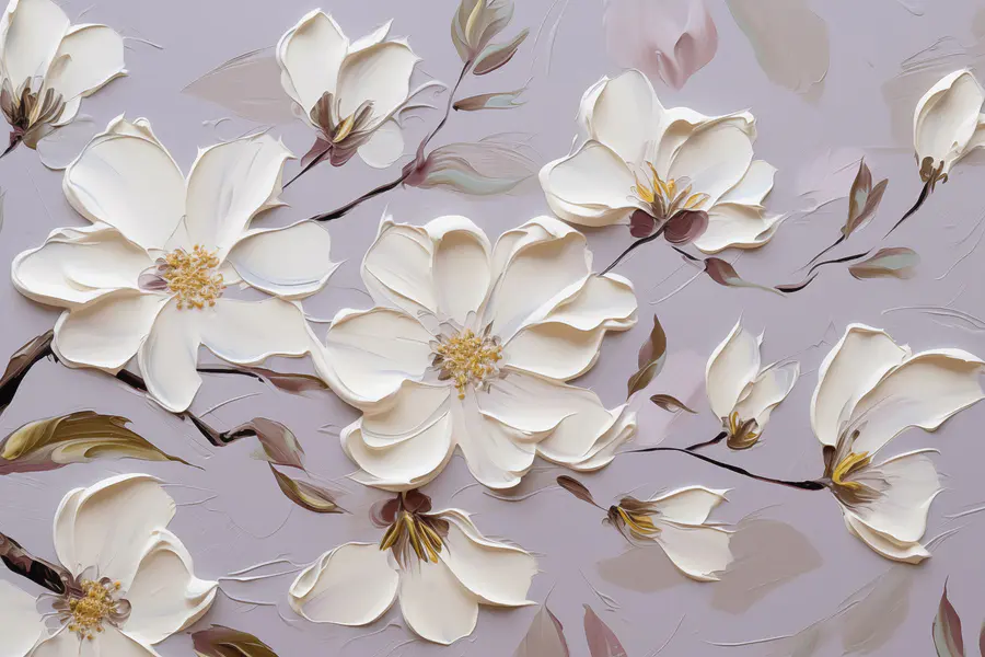 Verwandeln Sie jeden Raum in einen bezaubernden Zufluchtsort mit dieser Wandtapete mit zarten weißen Blumen. Stellen Sie sich vor, Sie betreten Ihren Raum und werden von diesen atemberaubenden Blüten begrüßt, die Ihnen Geschichten von Gelassenheit und Anmut zuflüstern. Die sanften Farbtöne und die filigranen Details rufen ein Gefühl der Ruhe hervor, fast wie eine sanfte Brise an einem warmen Tag. Sie eignen sich perfekt für eine gemütliche Leseecke oder ein verträumtes Schlafzimmer und sind wie ein Stück Natur im Haus – nur ohne Pollen. Ihre Freunde werden staunen, und Sie werden sich vielleicht sogar dabei ertappen, wie Sie ein wenig länger als sonst in der Schönheit Ihrer blumigen Oase träumen. Machen Sie einen Schritt in diese blumige Fantasie und lassen Sie den Charme sich entfalten!