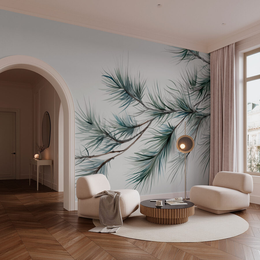 Verwandeln Sie einen Raum mit der Fototapete “Zarte Tannenzweige in sanften Farbtönen”. Stellen Sie sich vor, Sie wachen mit einem sanften Hauch von Natur auf, bei dem jede weiche Kiefernnadel wie ein Flüstern aus dem Wald an der Wand tanzt. Es hüllt Ihren Raum in ruhige Schwingungen und bringt einen Hauch von frischer Luft, perfekt für die gemütliche Leseecke oder vielleicht das Wohnzimmer, in dem man sich gerne unterhält. Die gedämpften Farben vermitteln ein Gefühl der Ruhe – fast so, als würde man einen gemütlichen Waldspaziergang machen, ohne das Haus zu verlassen. Ein charmanter Touch, der sich mühelos anfühlt und dennoch einen starken Eindruck hinterlässt. Was gibt es da nicht zu lieben?