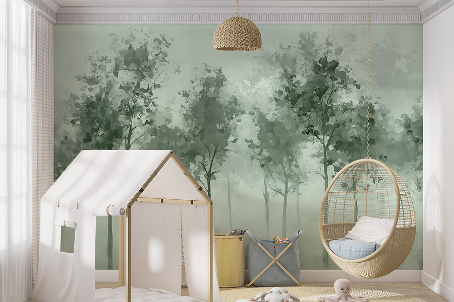 Die sanften Grüntöne und der Aquarelleffekt schaffen eine beruhigende Atmosphäre, perfekt für alle, die sich nach einem langen Tag einfach nur entspannen wollen. Es hat diese verträumte Qualität, die die Fantasie anregt – vielleicht fühlen Sie sich zu einem Spaziergang im Wald inspiriert oder genießen einfach ein paar ruhige Momente zu Hause. Ob in einer gemütlichen Ecke oder an einer dekorativen Wand, diese Fototapete lädt zu Ruhe und Schönheit ein und macht jeden Blick zu einer kleinen Flucht aus der Realität.