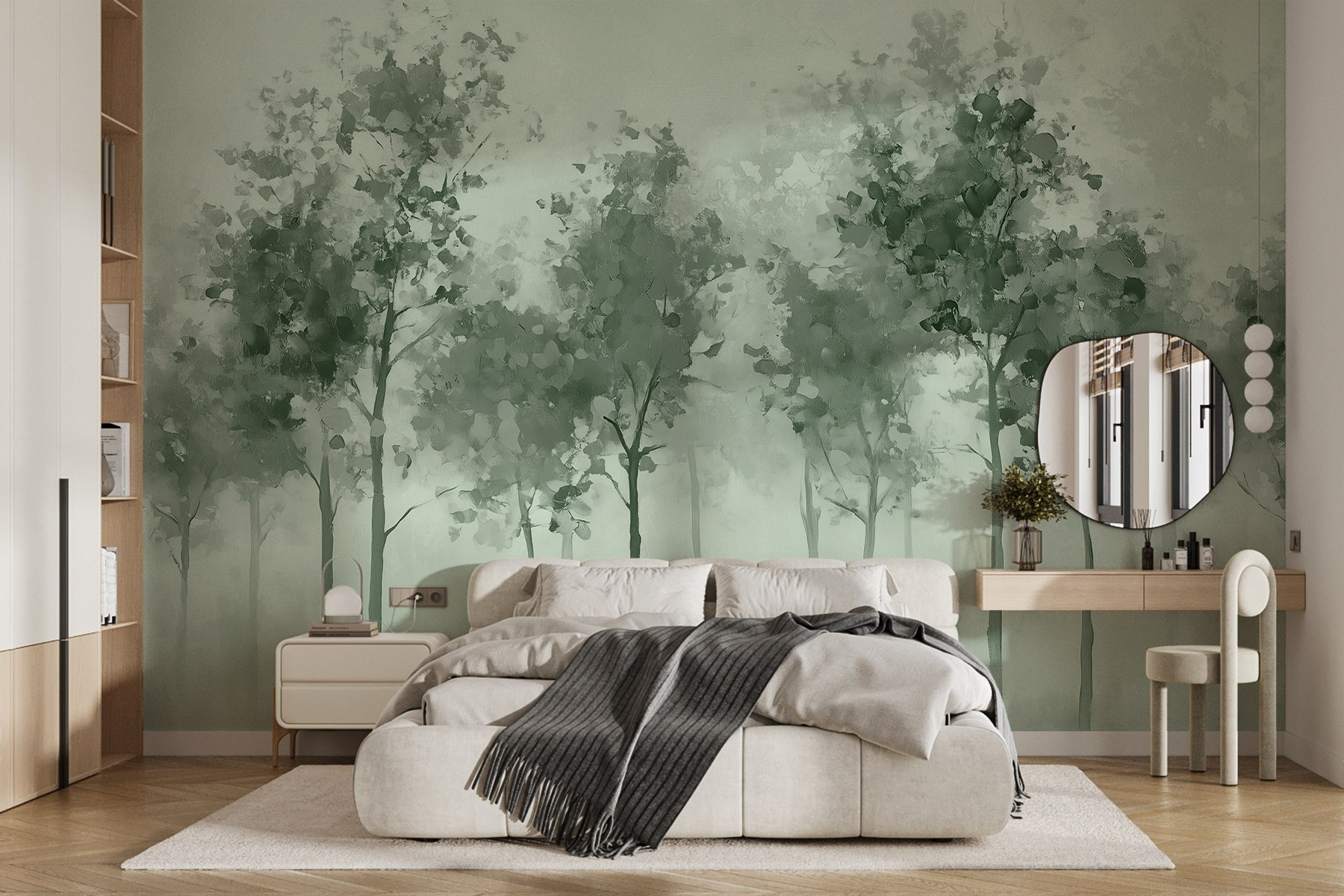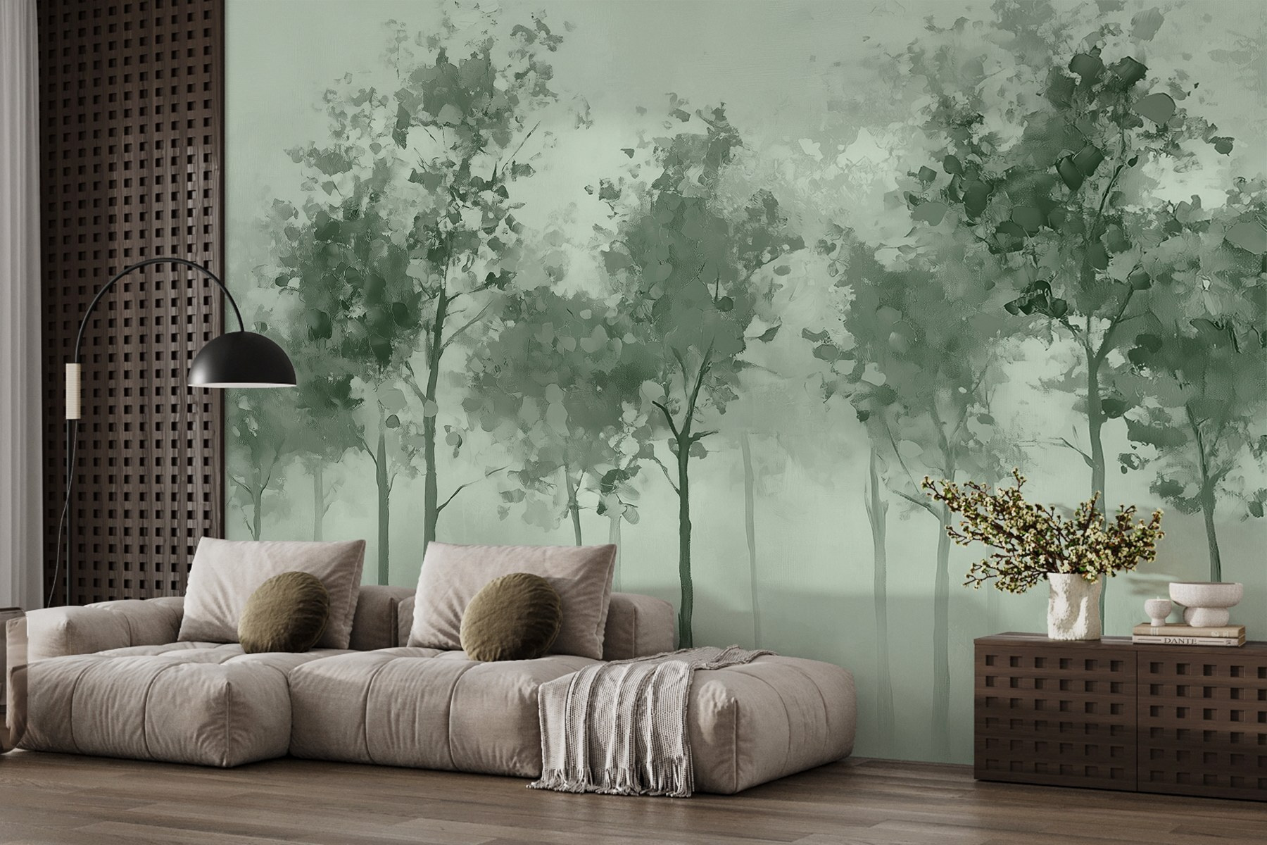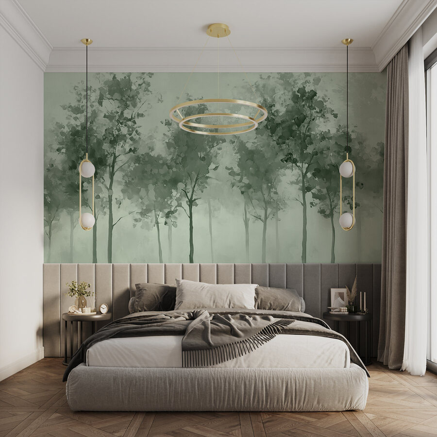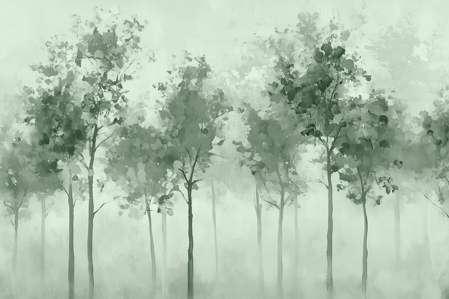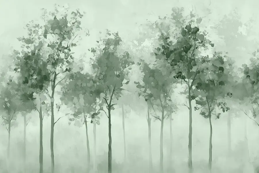 Die sanften Grüntöne und der Aquarelleffekt schaffen eine beruhigende Atmosphäre, perfekt für alle, die sich nach einem langen Tag einfach nur entspannen wollen. Es hat diese verträumte Qualität, die die Fantasie anregt – vielleicht fühlen Sie sich zu einem Spaziergang im Wald inspiriert oder genießen einfach ein paar ruhige Momente zu Hause. Ob in einer gemütlichen Ecke oder an einer dekorativen Wand, diese Fototapete lädt zu Ruhe und Schönheit ein und macht jeden Blick zu einer kleinen Flucht aus der Realität.