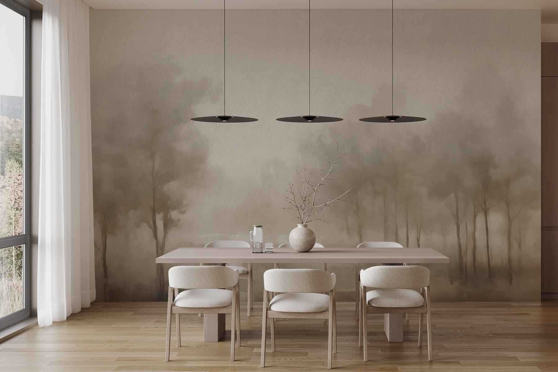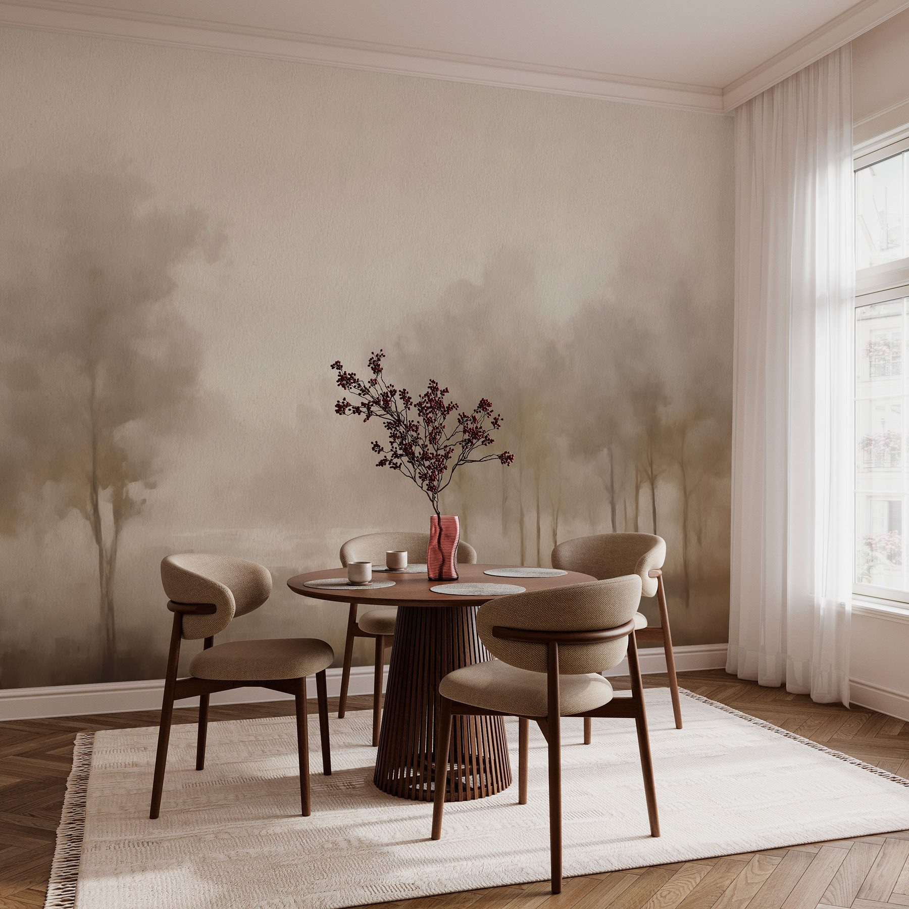 Verwandeln Sie jeden Raum mit dieser verträumten Fototapete, die eine neblige Landschaft mit Bäumen zeigt. Stellen Sie sich vor, Sie wachen auf und fühlen sich wie an einem ruhigen, nebligen Morgen, direkt in Ihrem eigenen Raum, wo die Schönheit der Natur leise flüstert. Die sanften Farbtöne sind perfekt, um eine ruhige Atmosphäre zu schaffen, egal ob es sich um ein gemütliches Schlafzimmer oder einen lebendigen Wohnbereich handelt. Es ist, als ob man sich einen friedlichen Wald ins Haus holt, ohne dass man Ungeziefer oder Wanderschuhe braucht! Dieses Wandbild ist perfekt für Naturliebhaber und alle, die sich nach Ruhe sehnen, denn es verzaubert bei jedem Anblick. Machen Sie es sich gemütlich und lassen Sie die neblige Landschaft Ihr Zuhause wie eine warme Umarmung umhüllen.