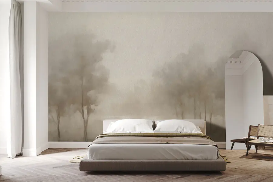 Verwandeln Sie jeden Raum mit dieser verträumten Fototapete, die eine neblige Landschaft mit Bäumen zeigt. Stellen Sie sich vor, Sie wachen auf und fühlen sich wie an einem ruhigen, nebligen Morgen, direkt in Ihrem eigenen Raum, wo die Schönheit der Natur leise flüstert. Die sanften Farbtöne sind perfekt, um eine ruhige Atmosphäre zu schaffen, egal ob es sich um ein gemütliches Schlafzimmer oder einen lebendigen Wohnbereich handelt. Es ist, als ob man sich einen friedlichen Wald ins Haus holt, ohne dass man Ungeziefer oder Wanderschuhe braucht! Dieses Wandbild ist perfekt für Naturliebhaber und alle, die sich nach Ruhe sehnen, denn es verzaubert bei jedem Anblick. Machen Sie es sich gemütlich und lassen Sie die neblige Landschaft Ihr Zuhause wie eine warme Umarmung umhüllen.