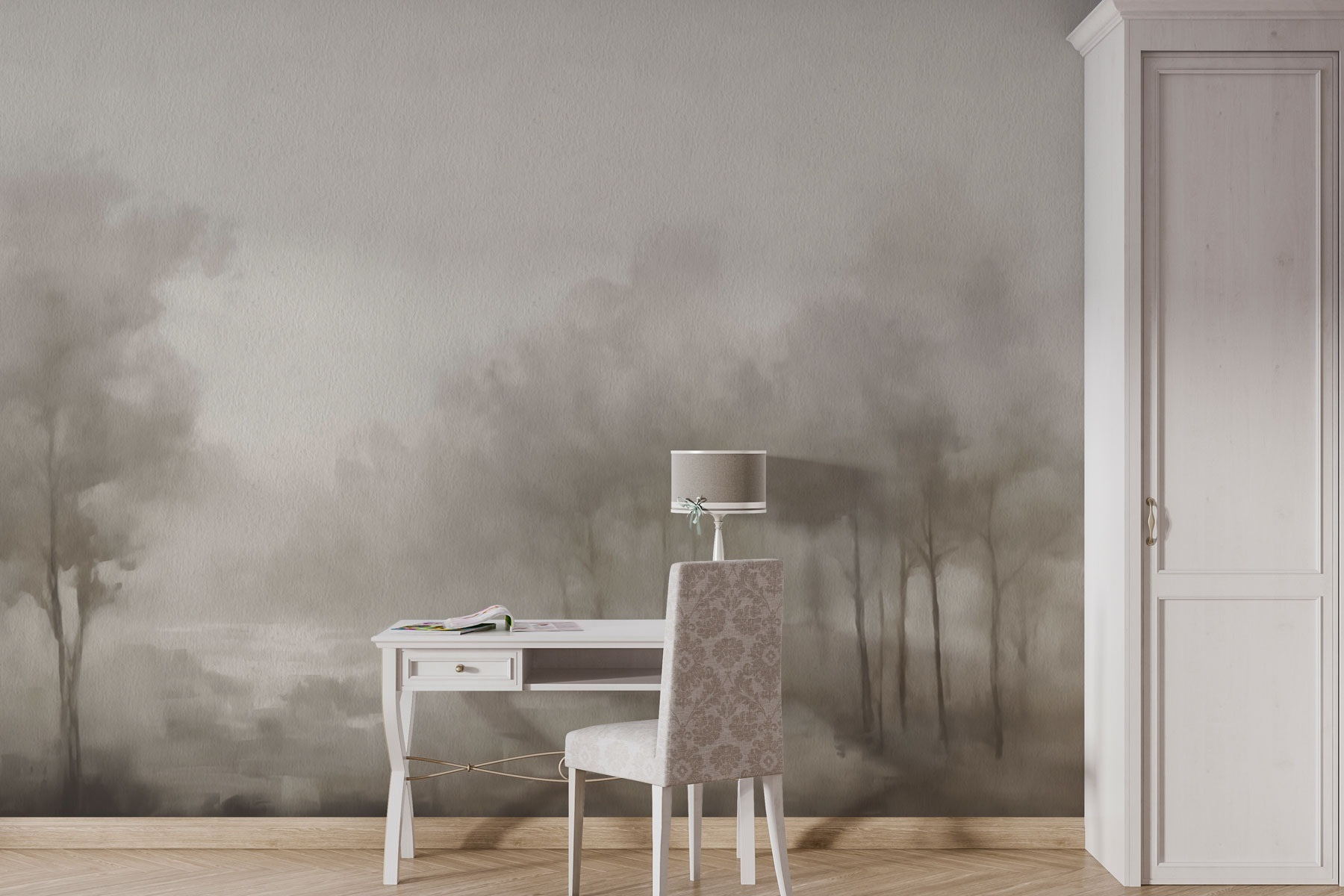 Verwandeln Sie Ihren Raum mit dieser Fototapete “Neblige Landschaft mit Bäumen” in einen traumhaften Rückzugsort. Stellen Sie sich vor, Sie wachen mit einem sanften Nebel auf, der sich durch die Bäume schlängelt – wie eine sanfte Umarmung der Natur. Es eignet sich perfekt für ein Wohn- oder Schlafzimmer und schafft eine beruhigende Atmosphäre, in der man sich stundenlang mit einem Buch (und vielleicht einer Tasse Tee) einkuscheln möchte. Die gedämpften Töne fügen sich mühelos ein und laden zur Wärme ein, ohne nach Aufmerksamkeit zu schreien. Stellen Sie sich vor, Sie verbringen Ihre Nachmittage mit Tagträumen und genießen die ruhige Atmosphäre, die dieses Wandbild schafft. Es ist ein kleines Stückchen Ruhe in Ihrem Zuhause, das Sie einlädt, sich zu entspannen und stilvoll abzuschalten.