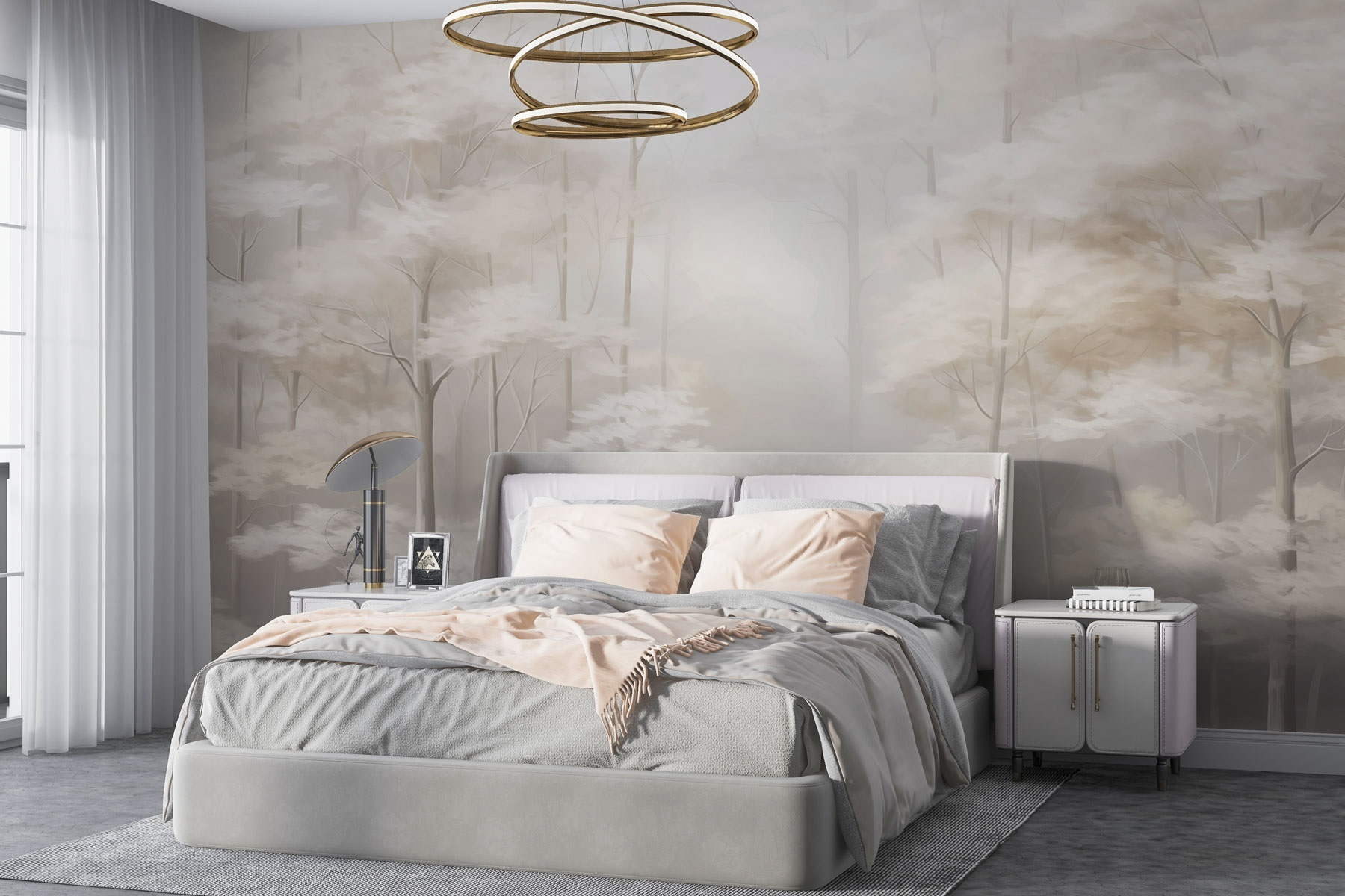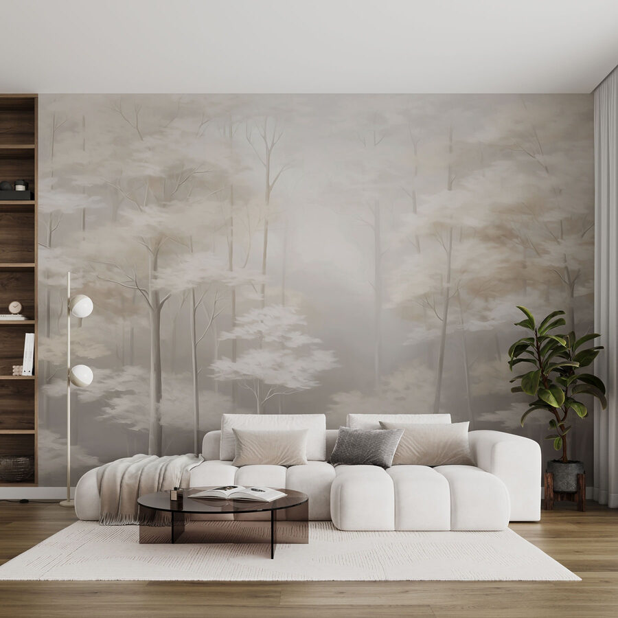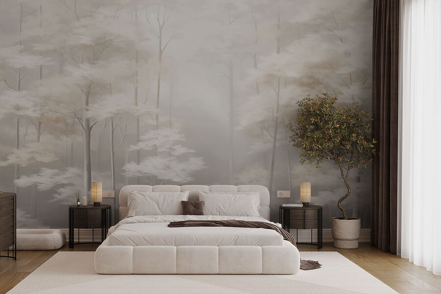 Stellen Sie sich vor, Sie treten in einen verträumten, nebelverhangenen Wald, in dem sanfte Töne und zarte Bäume zum Wandern einladen. Diese Fototapete ist wie ein frischer Wind für Ihren Raum – eine perfekte Mischung aus der Ruhe der Natur und moderner Kunst. Stellen Sie sich gemütliche Abende in einem Raum vor, der durch diese heitere Kulisse verwandelt wird. Es ist nicht nur eine Wandmalerei, es ist eine Stimmung. Ob Sie nun einen Kaffee trinken oder an Ihrem neuesten Projekt arbeiten, diese beruhigende Szene verspricht, den Geist zu beruhigen und Inspiration zu wecken. Außerdem ist es ein toller Gesprächsanlass für alle Ihre Gäste. Wer würde nicht gerne von zu Hause aus über die Schönheit der Natur plaudern?