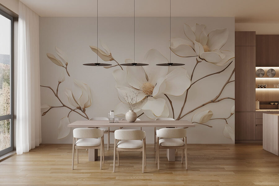 Es ist so einfach, eine leere Wand in einen ruhigen Rückzugsort zu verwandeln, wie dieses atemberaubende Wandbild mit weißen Blumen. Stellen Sie sich diese anmutigen Blüten vor, die geradezu darum betteln, bewundert zu werden. Es ist, als ob man die Natur ins Haus holt, ohne die lästigen Pollen! Wenn das Sonnenlicht über die zart gemalten Blütenblätter tanzt, fühlt sich der Raum leichter und luftiger an – es ist ein Hauch von frischer Luft. Dieses Wandbild eignet sich perfekt für ein gemütliches Wohnzimmer oder ein ruhiges Schlafzimmer und ist nicht nur Dekoration, sondern erzählt eine Geschichte von Eleganz und Ruhe. Stellen Sie sich vor, Sie trinken mit Freunden einen Tee und sind dabei von dieser friedlichen Atmosphäre umgeben. Die Schönheit dieses Wandbildes liegt nicht nur im Design, sondern auch darin, dass es dem Raum ein lebendiges und doch ruhiges Gefühl verleiht. Also, warum warten? Lassen Sie dieses Stück in Ihrem Zuhause erblühen!