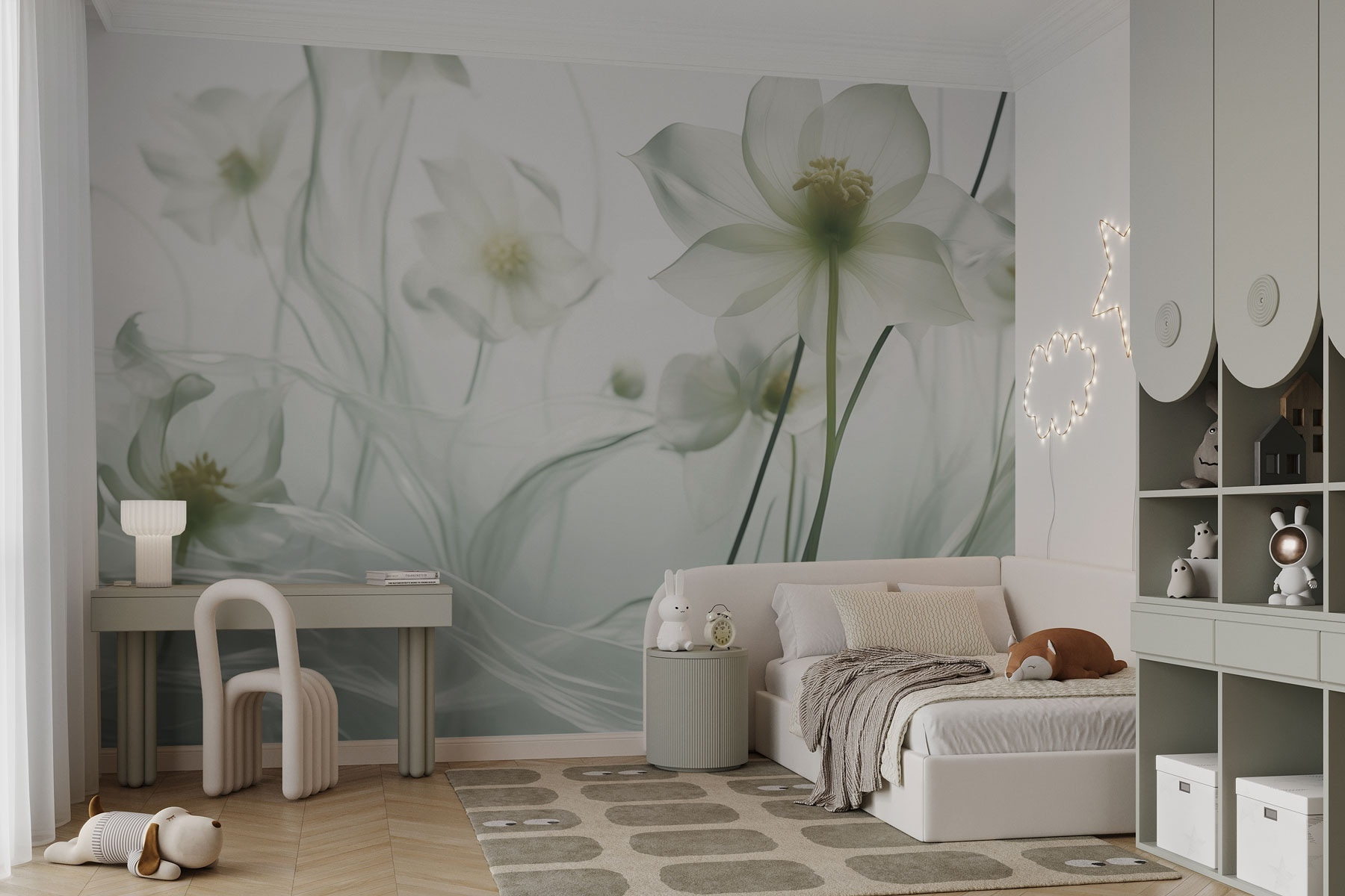 Noch nie war es so einfach, einen Raum zu gestalten, wie mit diesen atemberaubenden Wandbildern, auf denen zarte weiße Blumen auf ihren langen Stielen tanzen. Stellen Sie sich vor, Sie betreten einen Raum, in dem die Schönheit der Natur Sie umarmt und eine heitere Atmosphäre schafft, die Ihre Stimmung hebt. Jedes Blumenmuster strahlt eine subtile Eleganz aus, fast so, als würde man in den Tagtraum eines Künstlers eintauchen. Dieses Wandbild eignet sich perfekt für gemütliche Ecken oder geräumige Wohnbereiche und vermittelt ein Gefühl der Ruhe, das jeden Tag zu etwas ganz Besonderem macht. Bereiten Sie sich darauf vor, sich in Komplimenten zu sonnen, wenn Gäste Ihre schicke Dekoration bewundern. Es sorgt für Gesprächsstoff – perfekt für alle, die einen Hauch von Kunst der Natur im Haus zu schätzen wissen!