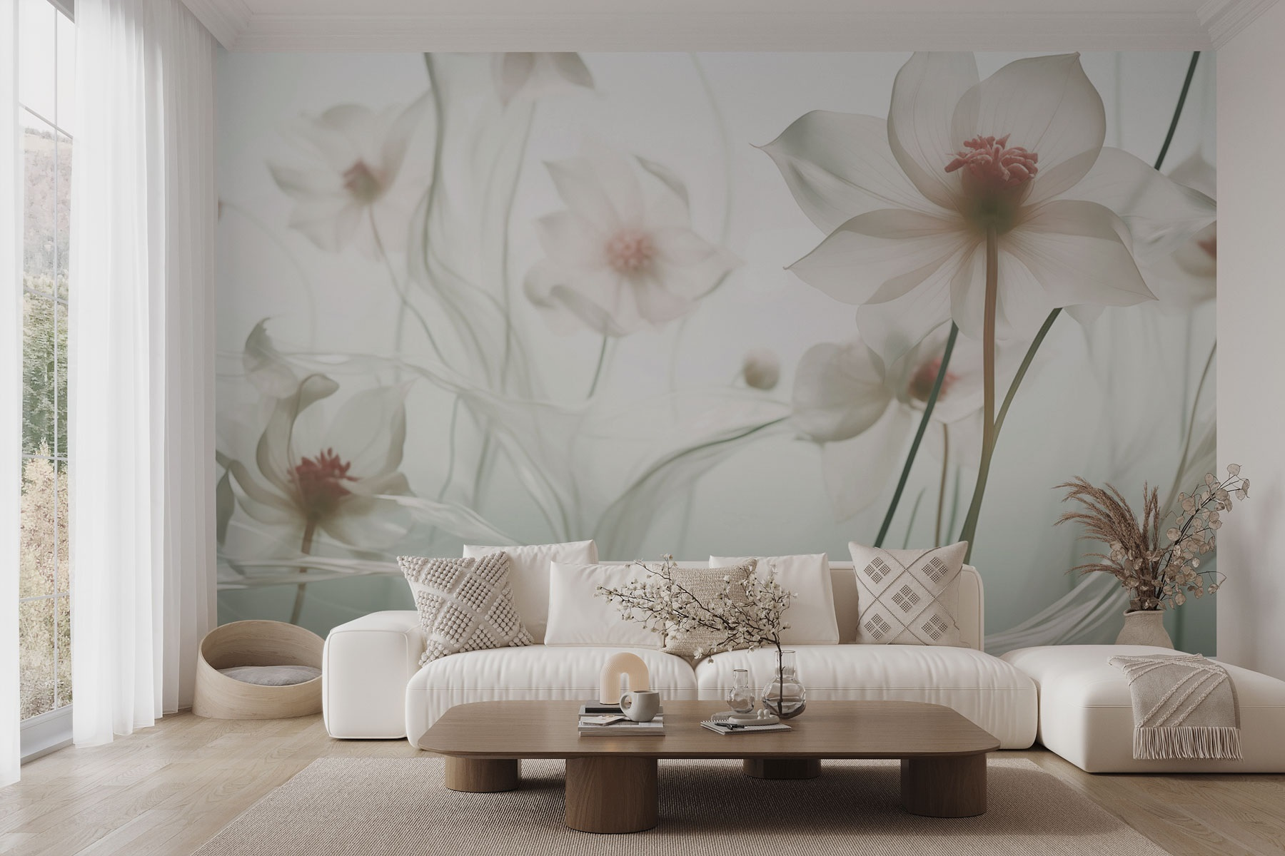 Verwandeln Sie eine schlichte Wand in einen verträumten Ort mit dem Wandbild “Whispers of Delicate Floral Elegance”. Diese Fototapete fühlt sich an wie eine sanfte Brise in einem blühenden Garten, in dem zarte Blüten inmitten von hauchdünnen Strähnen tanzen. Stellen Sie sich vor, Sie spazieren durch eine heitere Oase und schlürfen Kräutertee – herrlich, oder? Die Farben sind dezent und schaffen eine beruhigende Atmosphäre, die einen zufrieden seufzen lässt. Perfekt für gemütliche Ecken oder sogar für den ungemütlichen Flur, der ein wenig Liebe braucht. Sie bringt Wärme, Schönheit und einen Hauch von Laune in jeden Raum und macht jeden Blick zu einem kleinen Moment der Freude. Wer hätte gedacht, dass Blumen so süß flüstern können?
