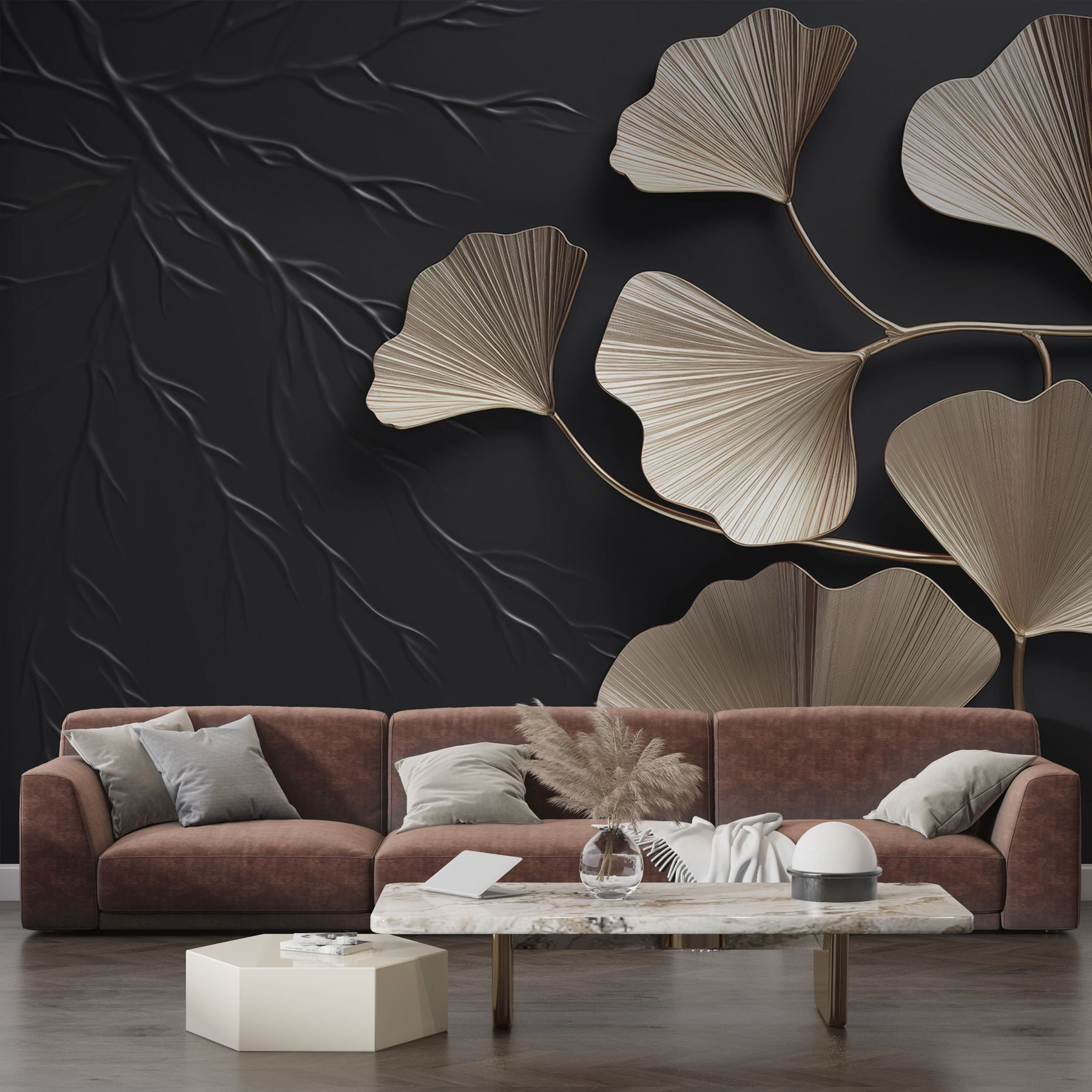Verwandeln Sie Ihren Raum mit dieser beeindruckenden Fototapete, die kunstvolle Ginkgoblätter auf einem einzigartigen Hintergrund zeigt. Stellen Sie sich vor, Sie wachen mit den sanften, natürlichen Tönen des Laubes auf, das Ihre Wände umgibt. Es verleiht Ihnen einen Hauch von Natur, der Ihre Gäste zum Staunen bringen wird. Die anmutigen Blätter scheinen zu tanzen und schaffen eine beruhigende Atmosphäre, die sich perfekt für eine gemütliche Leseecke oder einen lebhaften Essbereich eignet. Außerdem lässt es sich leicht anbringen – perfekt für alle, die eine schnelle Verschönerung ohne Schmutz lieben. Diese Fototapete könnte Sie zu ein paar tiefen Atemzügen und Tagträumen inspirieren. Wer würde das nicht wollen?