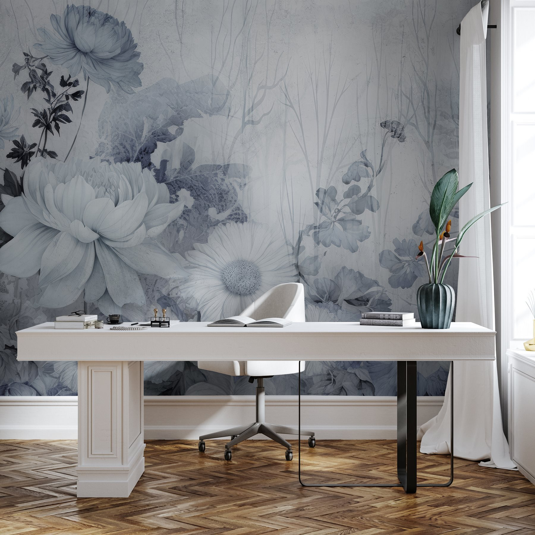 Mit der Fototapete “Soft Petals in Tranquil Shades” verwandeln Sie jeden Raum in einen ruhigen, blumigen Rückzugsort. Stellen Sie sich vor, Sie wachen jeden Morgen mit zarten Blüten auf, die eine ruhige Stimmung verbreiten – klingt schön, oder? Dieses Wandbild ist in sanften Blau- und Weißtönen gehalten und schafft eine verträumte Atmosphäre, die zum Entspannen einlädt. Ob in einer gemütlichen Leseecke oder in einem lebhaften Wohnzimmer, es ist wie ein frischer Wind, der selbst die trübsten Wände aufweckt. Stellen Sie sich vor, Ihre Gäste treten ein und halten inne, um die künstlerische Note zu bewundern. Ihre Wände haben es verdient, ohne den Aufwand echter Blumen zu erblühen, und ganz ehrlich: Sie brauchen sie nicht zu gießen!