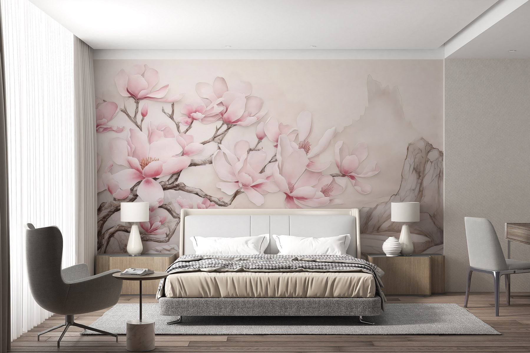 Verleihen Sie Ihrem Raum einen Hauch von natürlichem Charme mit dieser wunderschönen Fototapete, die einen mit rosafarbenen Blumen geschmückten Baum zeigt. Stellen Sie sich vor, Sie wachen auf und fühlen sich, als würden Sie jeden Tag durch einen ruhigen Garten spazieren. Die sanften Farben schaffen eine beruhigende Atmosphäre, die sich perfekt für gemütliche Ecken oder Akzentwände eignet. Es ist wie ein Hauch von frischer Luft für Ihr Zimmer – ein grüner Daumen ist nicht erforderlich! Perfekt zum Tagträumen, für gemütliche Bücherecken oder einfach zum Genießen der entspannten Atmosphäre. Ihre Wände werden es Ihnen danken! Stellen Sie sich vor, Sie schlürfen einen Kaffee und genießen die Schönheit – was für eine Art, den Tag zu beginnen!